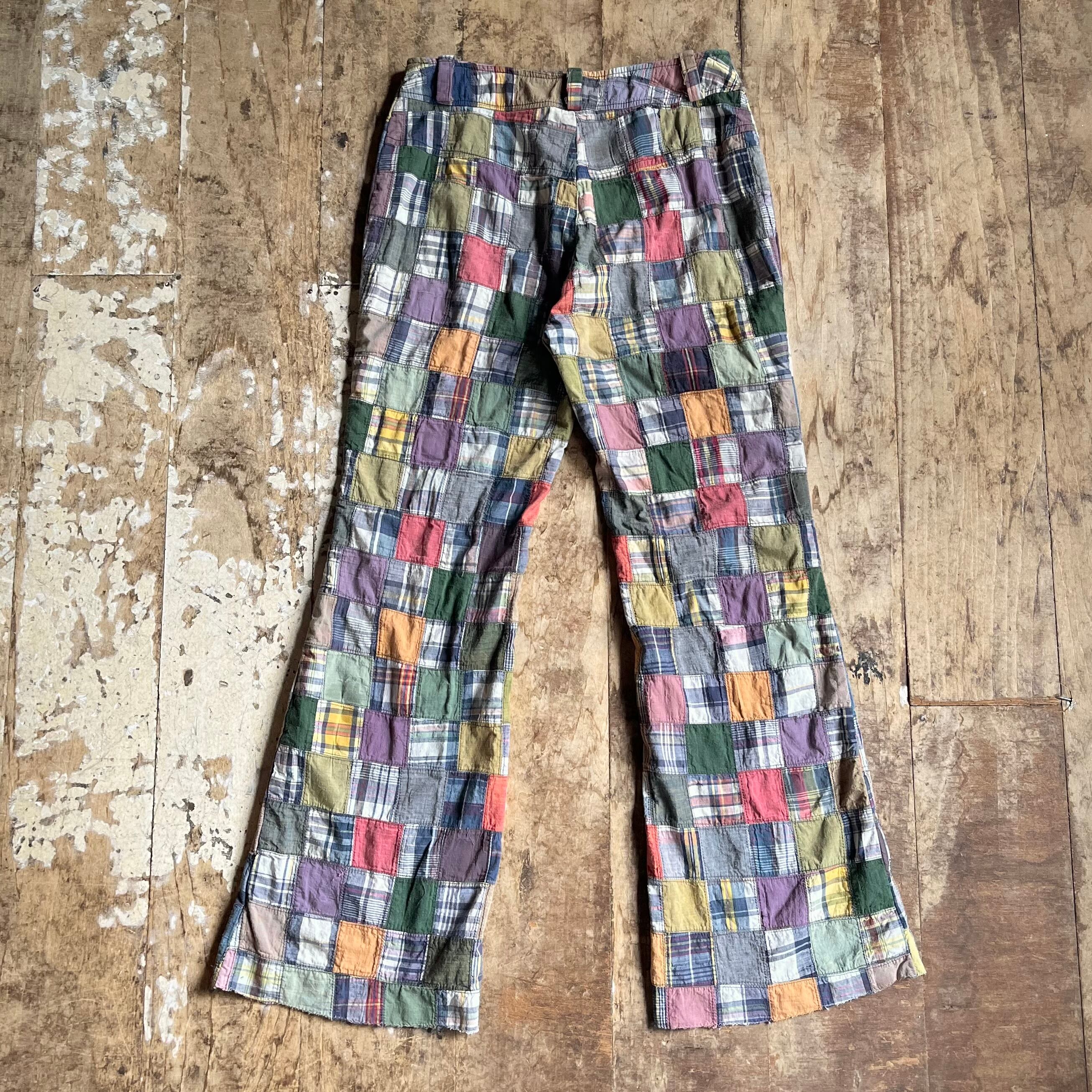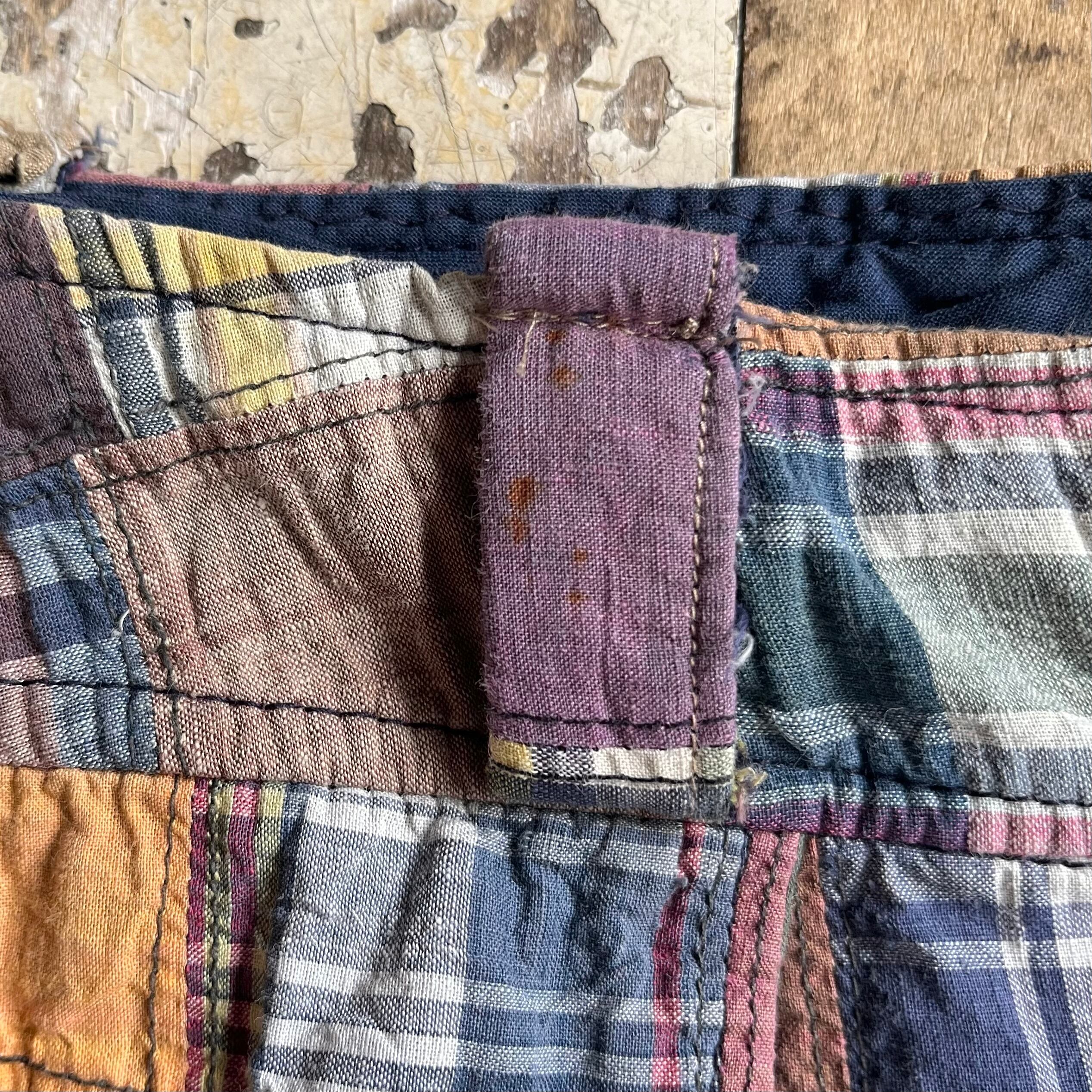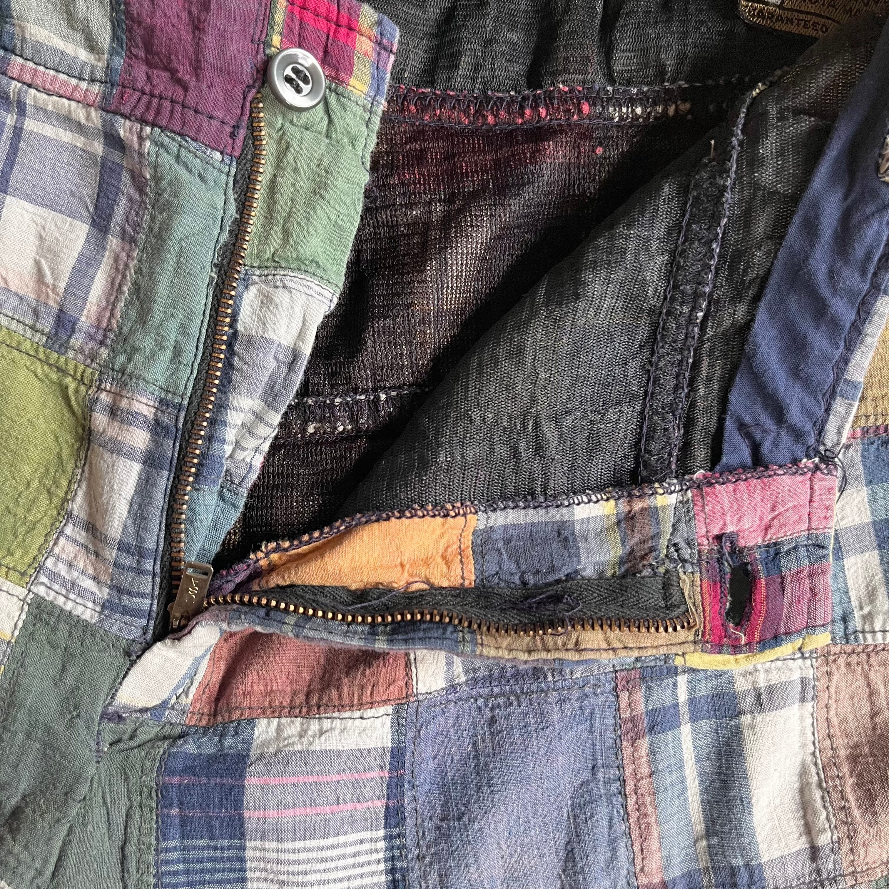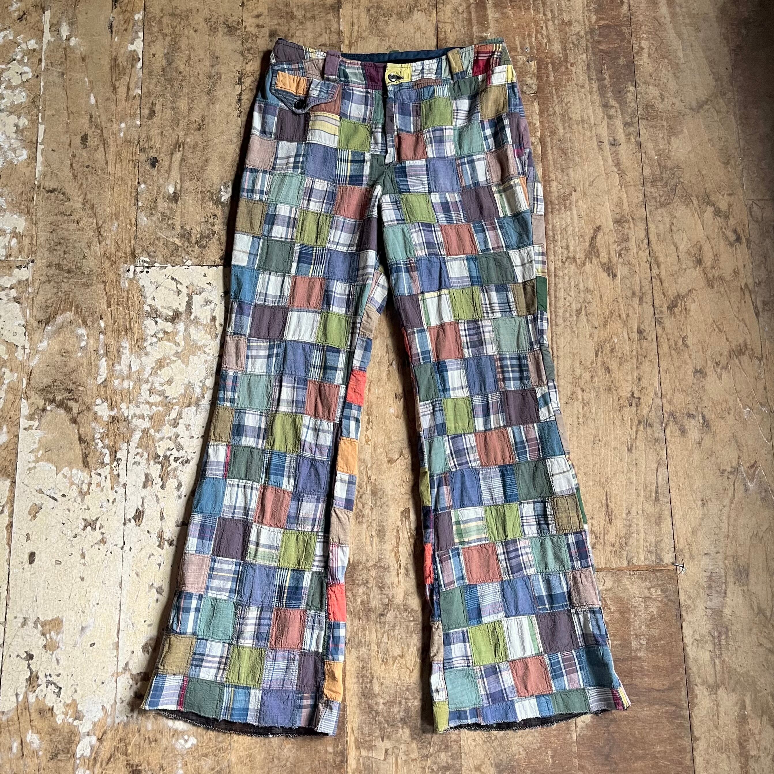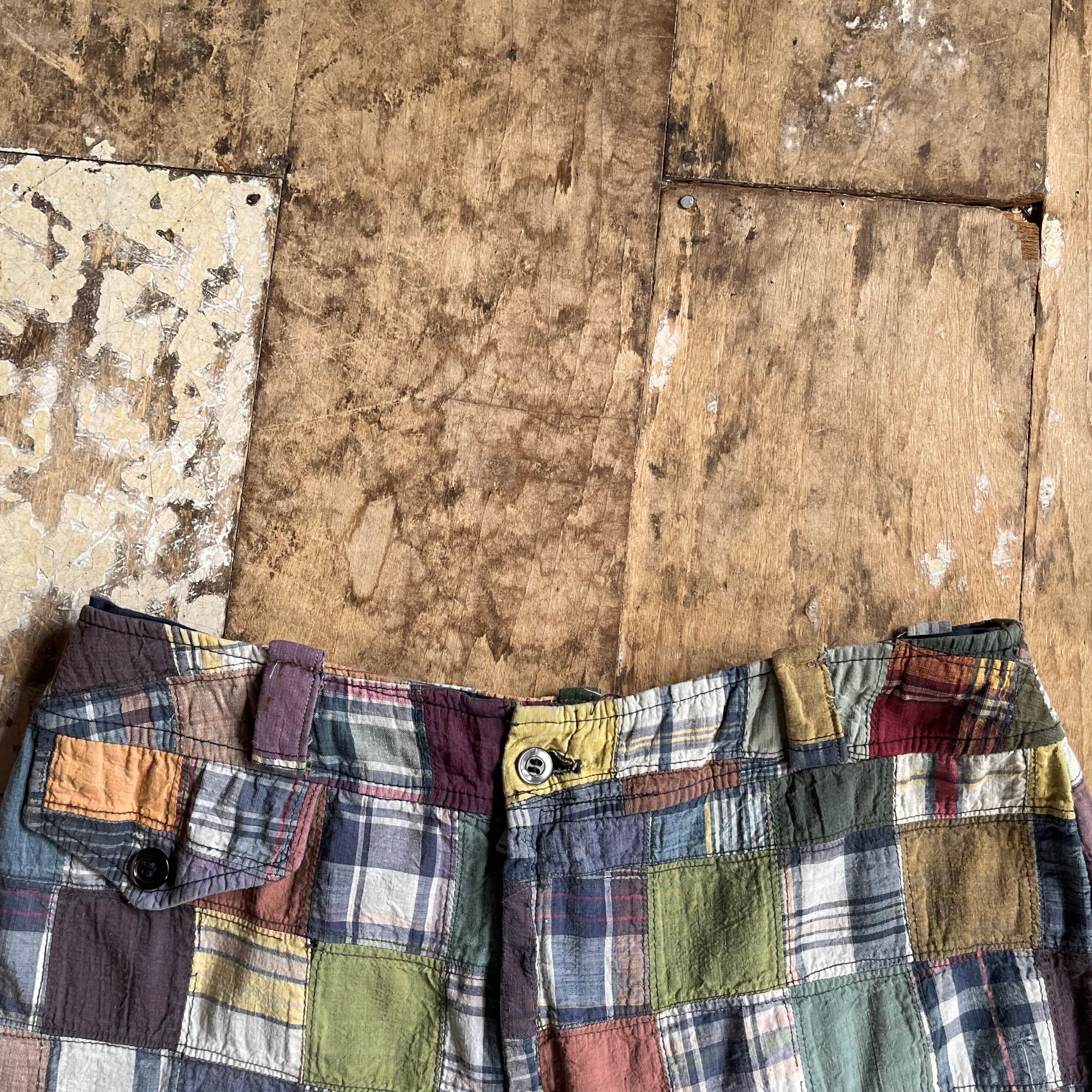 マドラスチェックパッチワークパンツ。