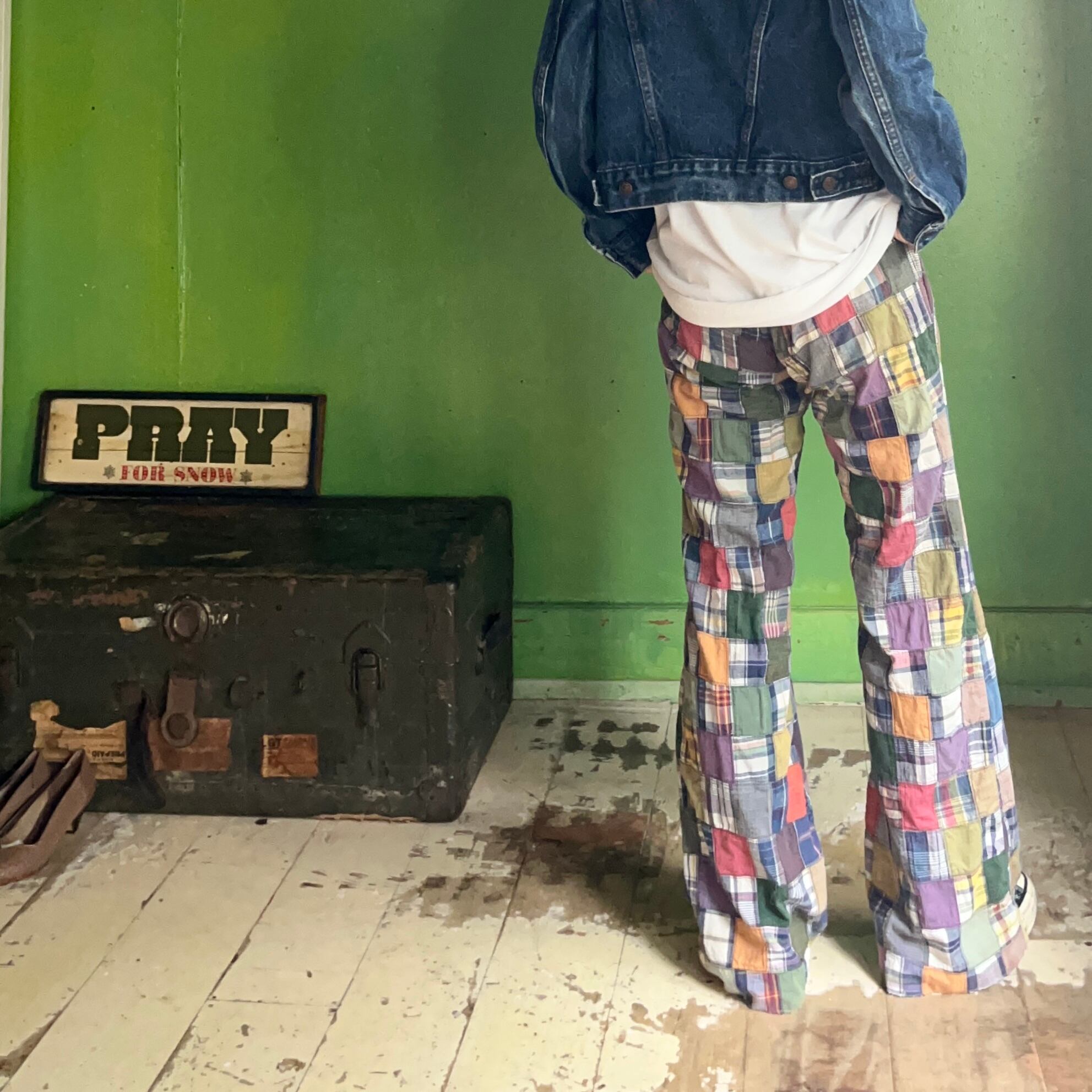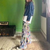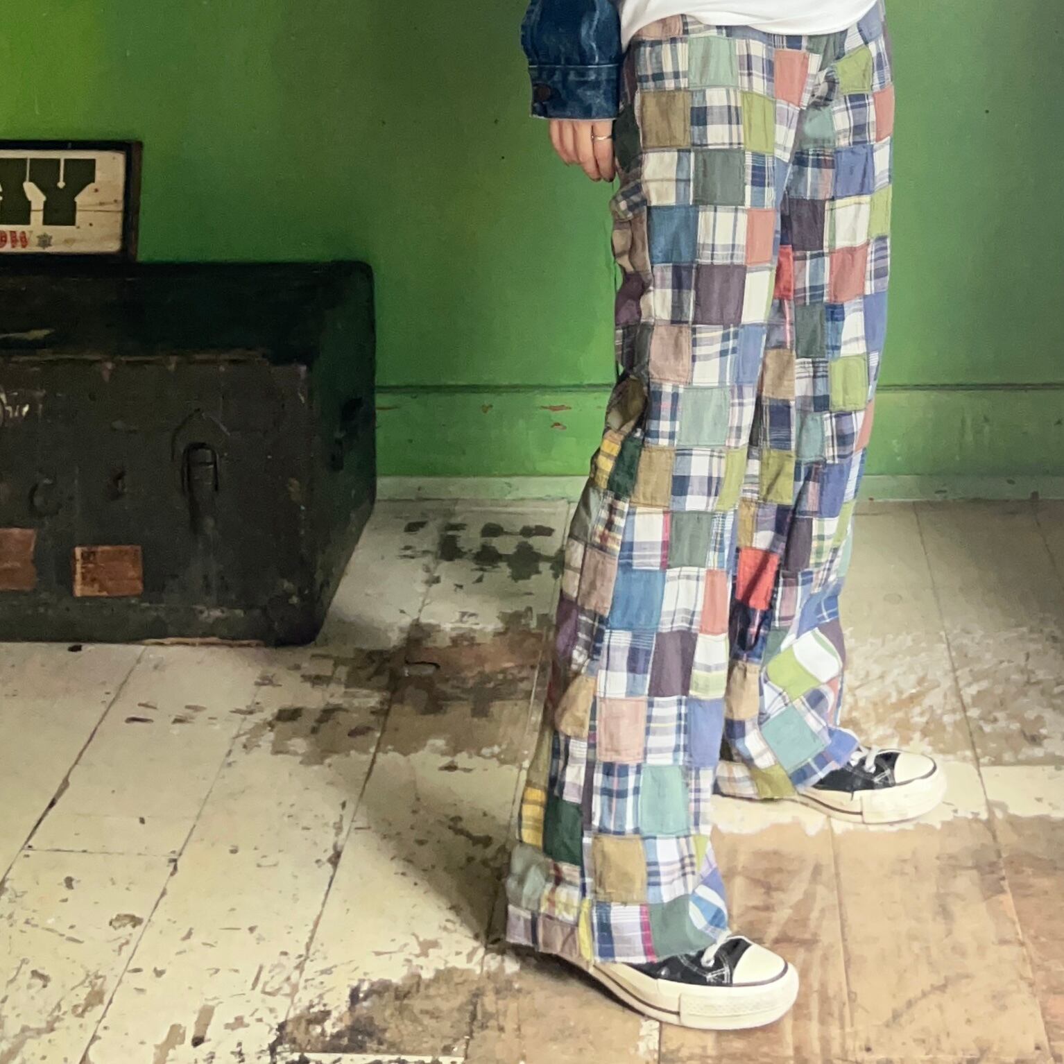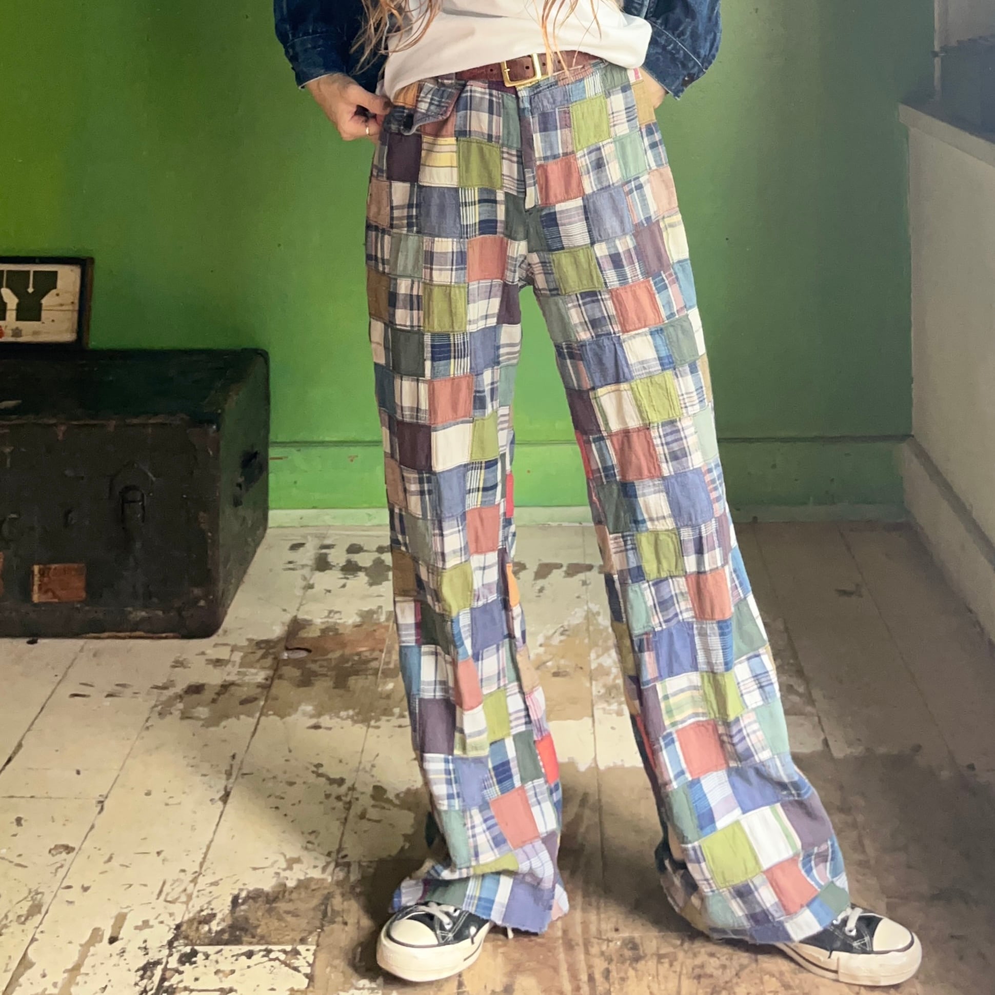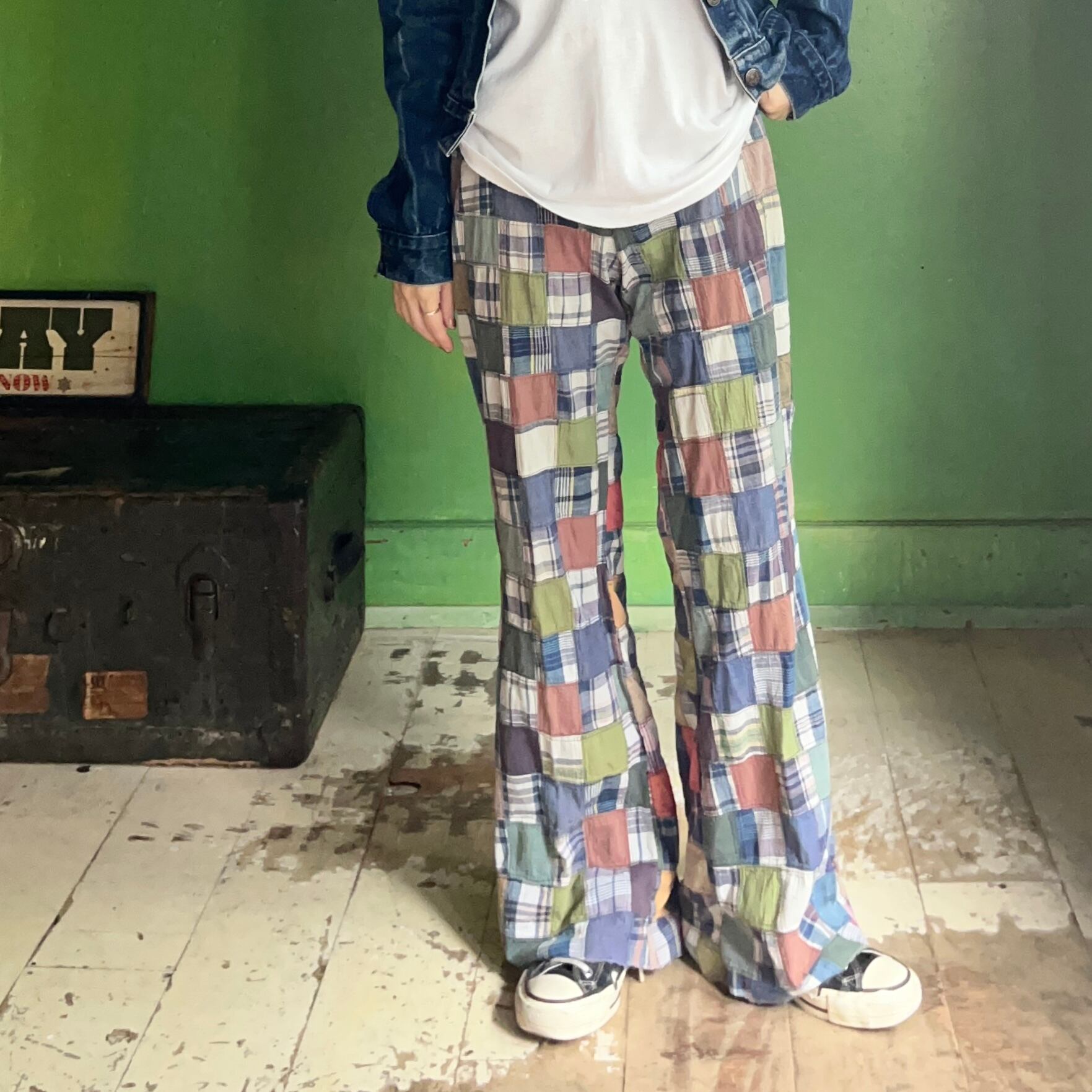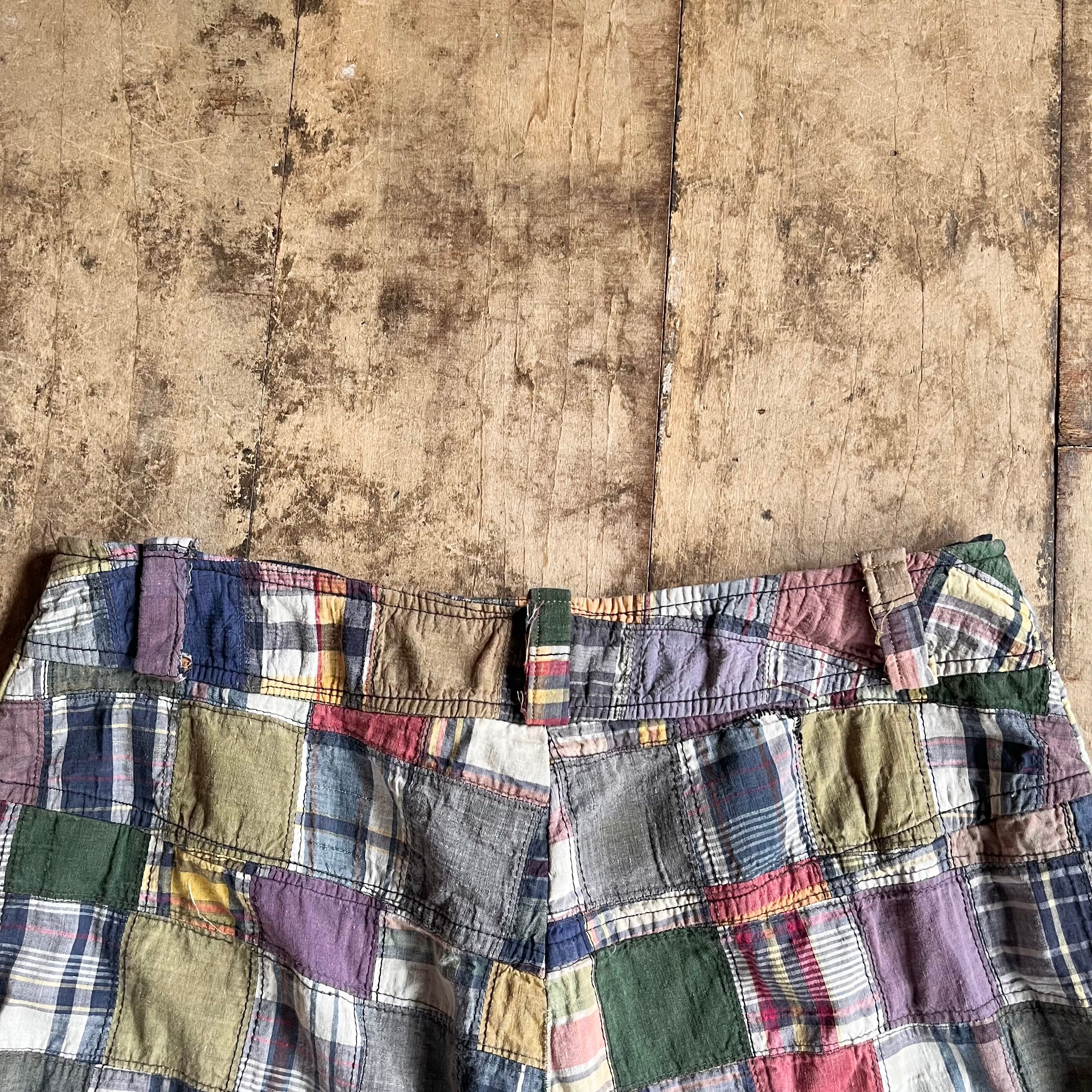 マドラスチェックパッチワークパンツ。