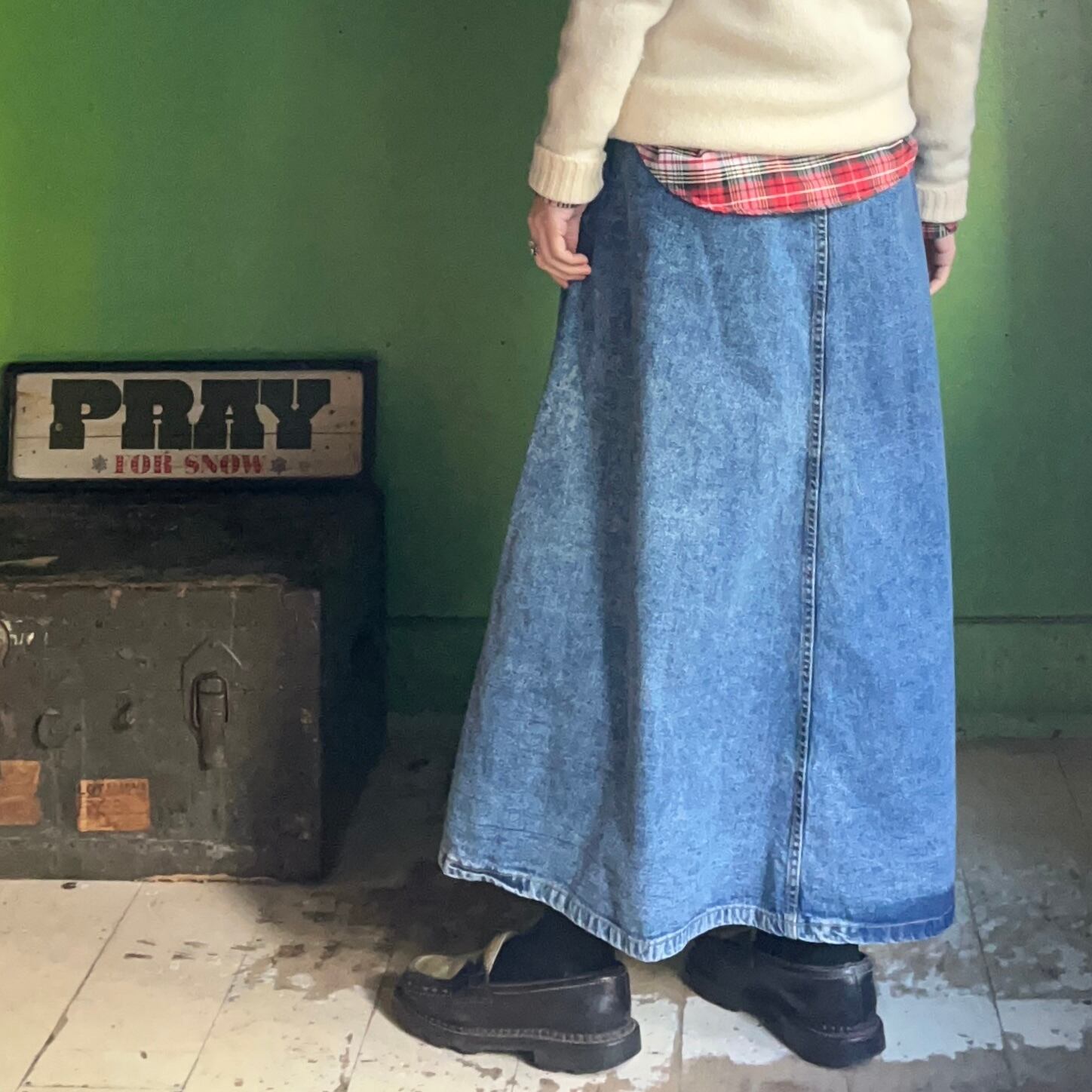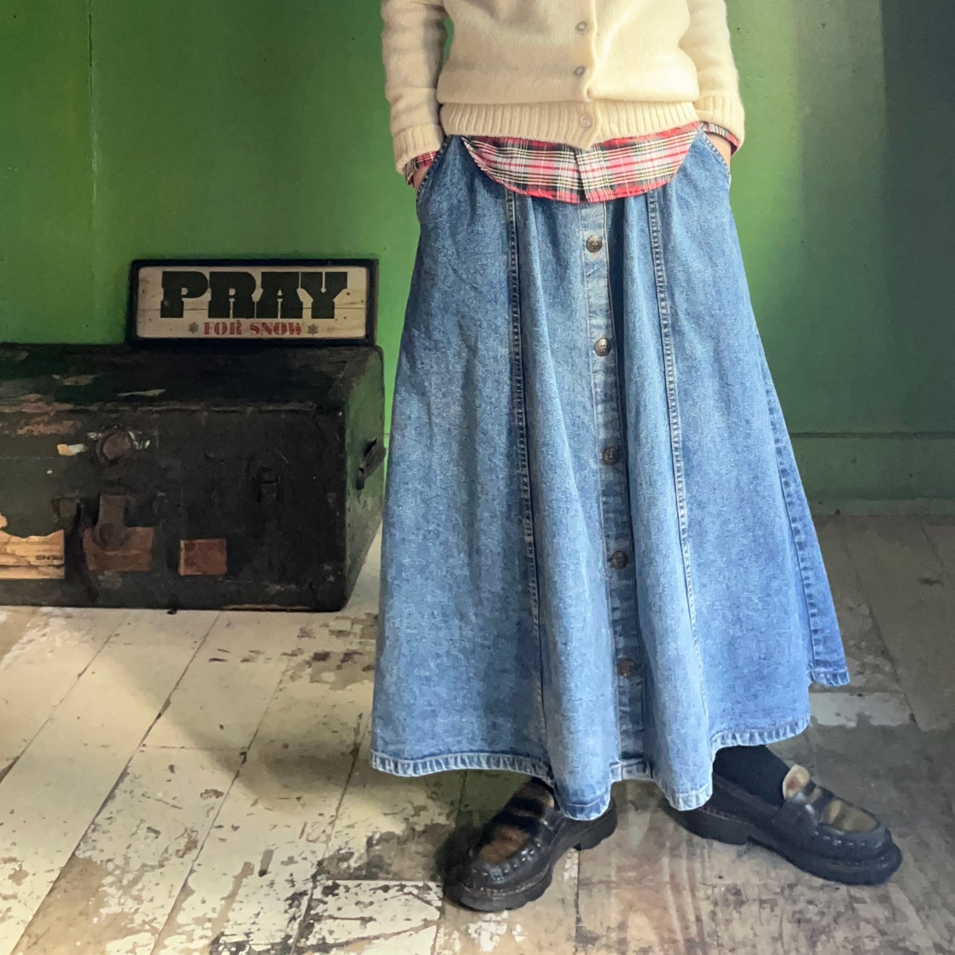 デニムフレアスカート。