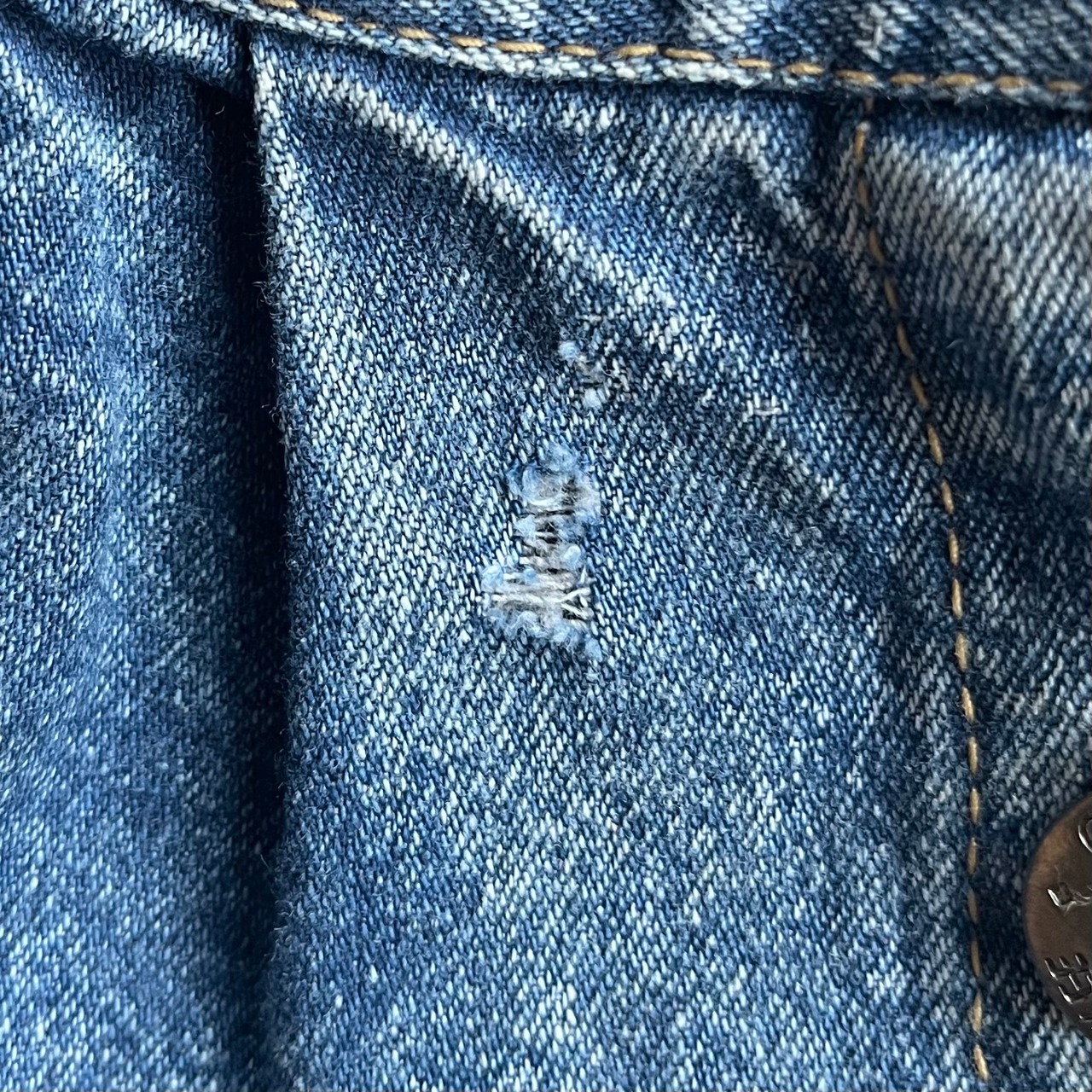 フロントにすれ、ほつれ。補修跡。