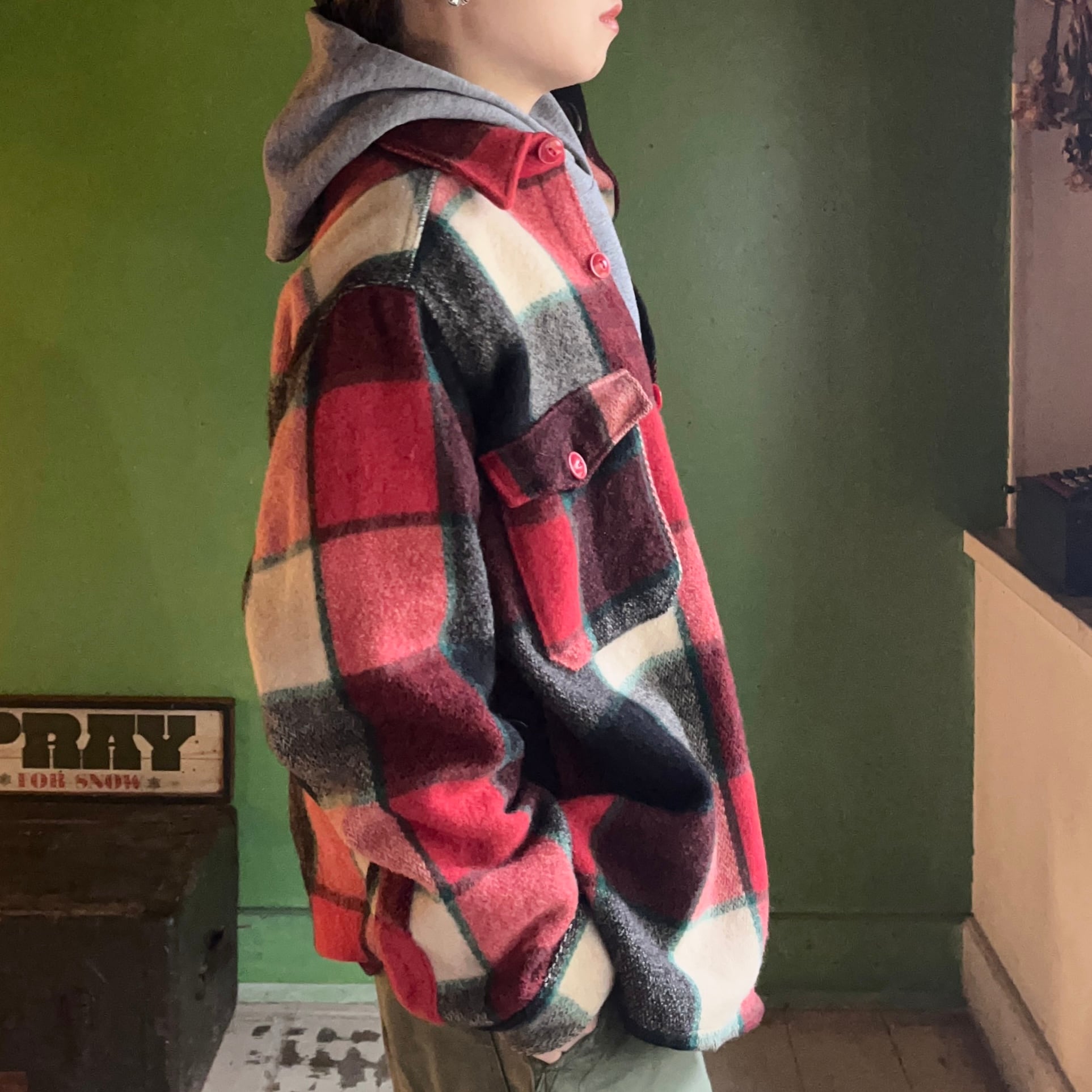 メルトンウールのチェックシャツ。