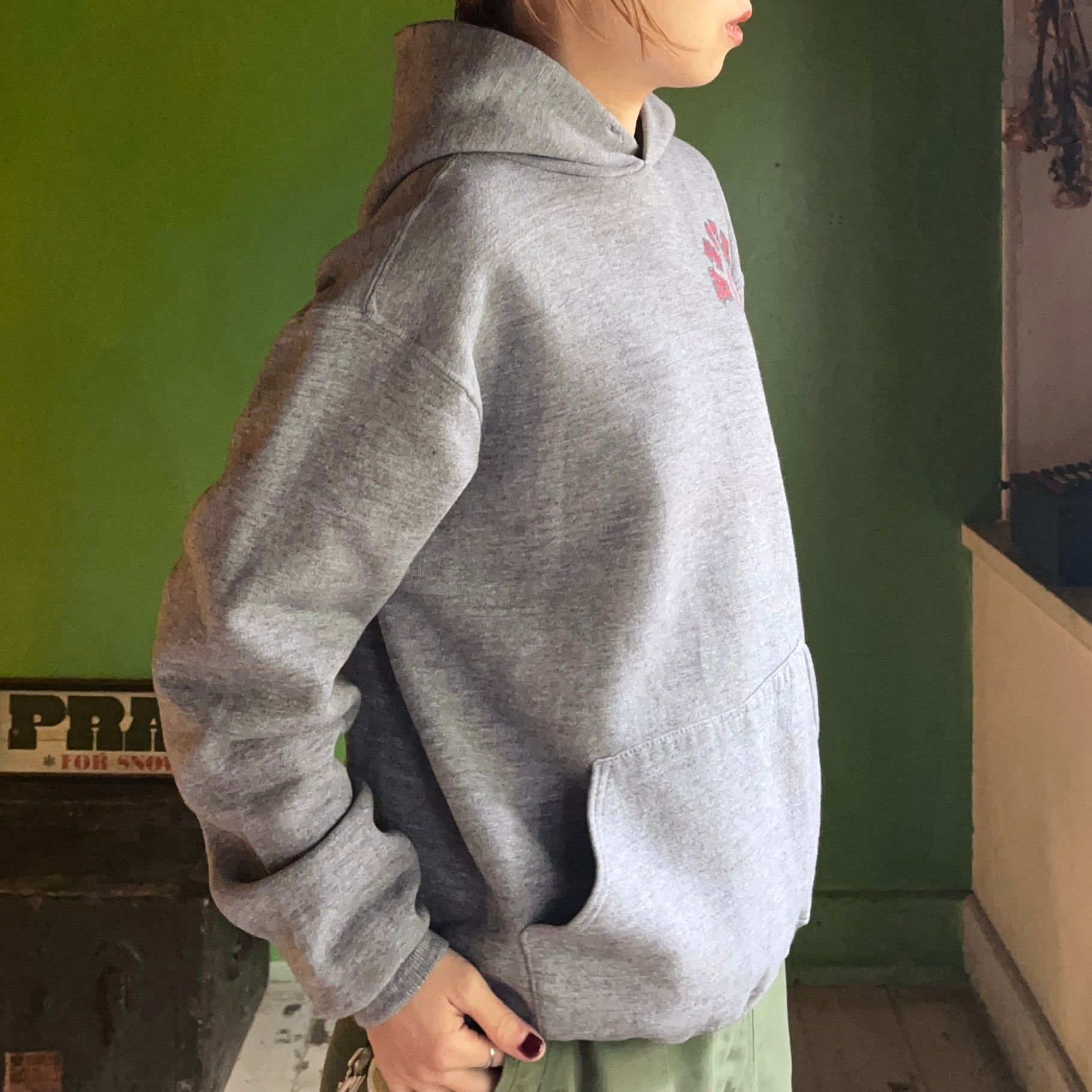 プリントスウェットパーカー。