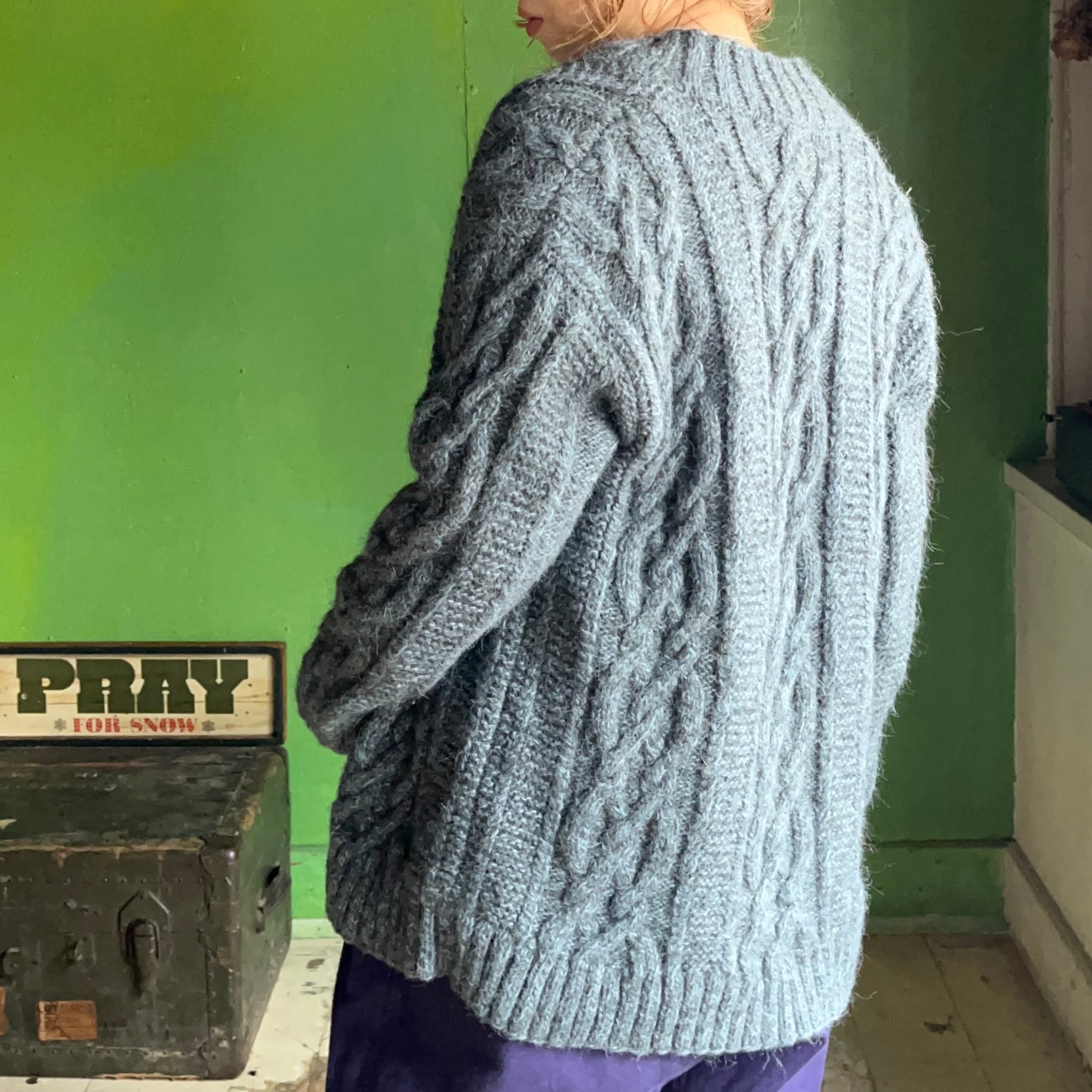 アルパカニットの、ケーブル編み