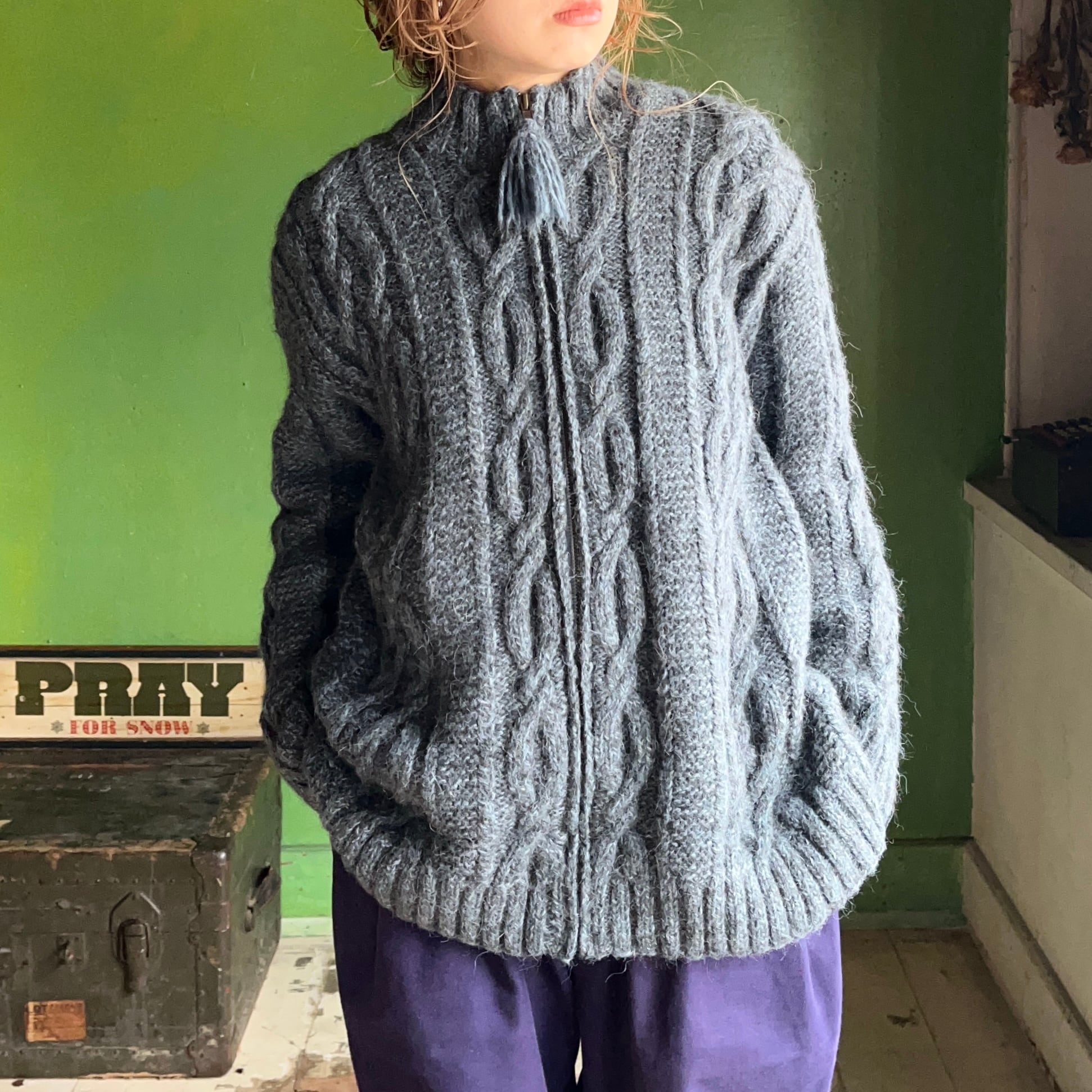 90s JONES NEW YORK アルパカ ケーブルニット ジップアップ カーディガン