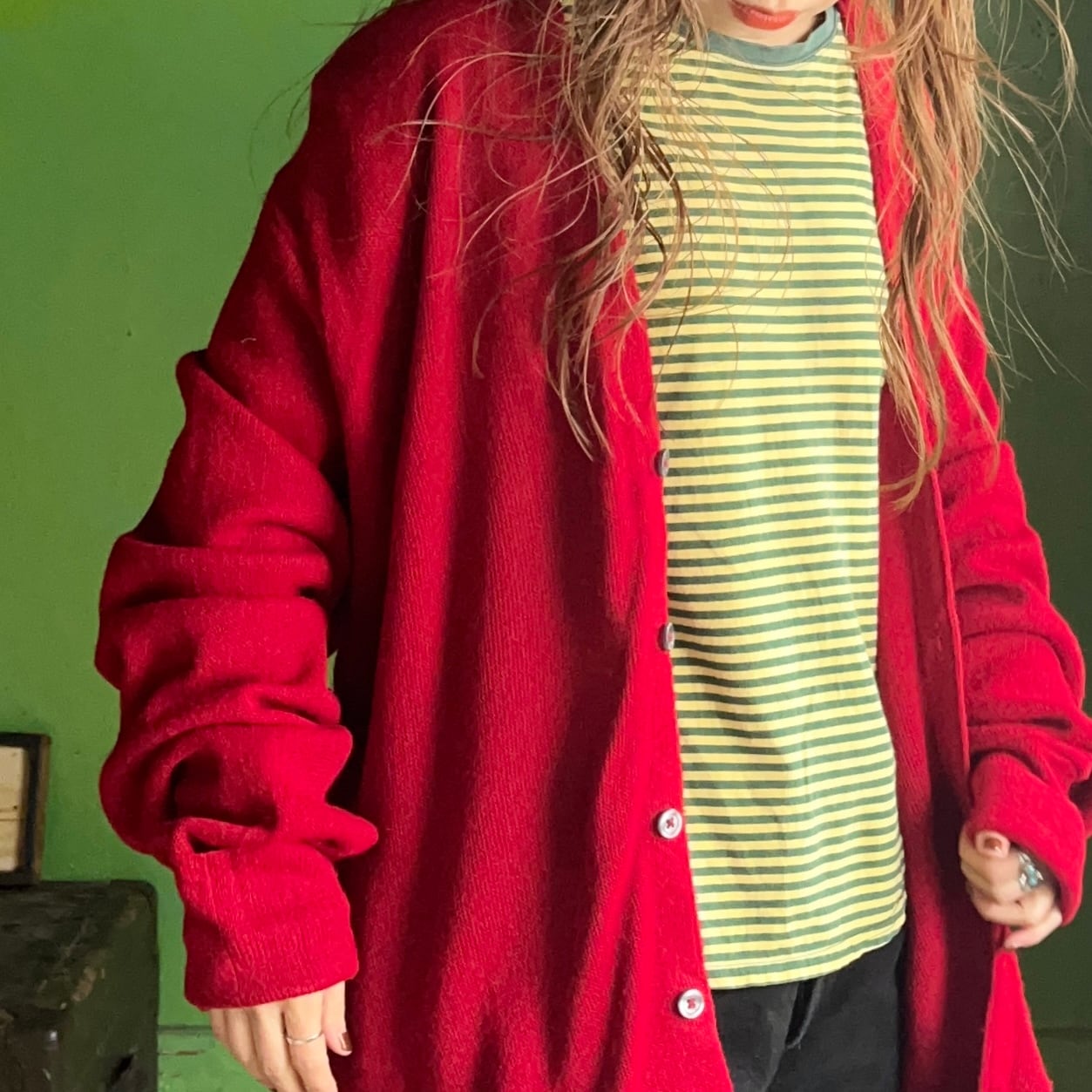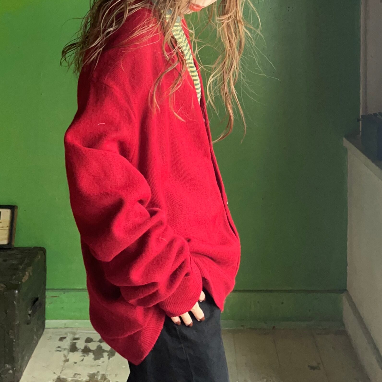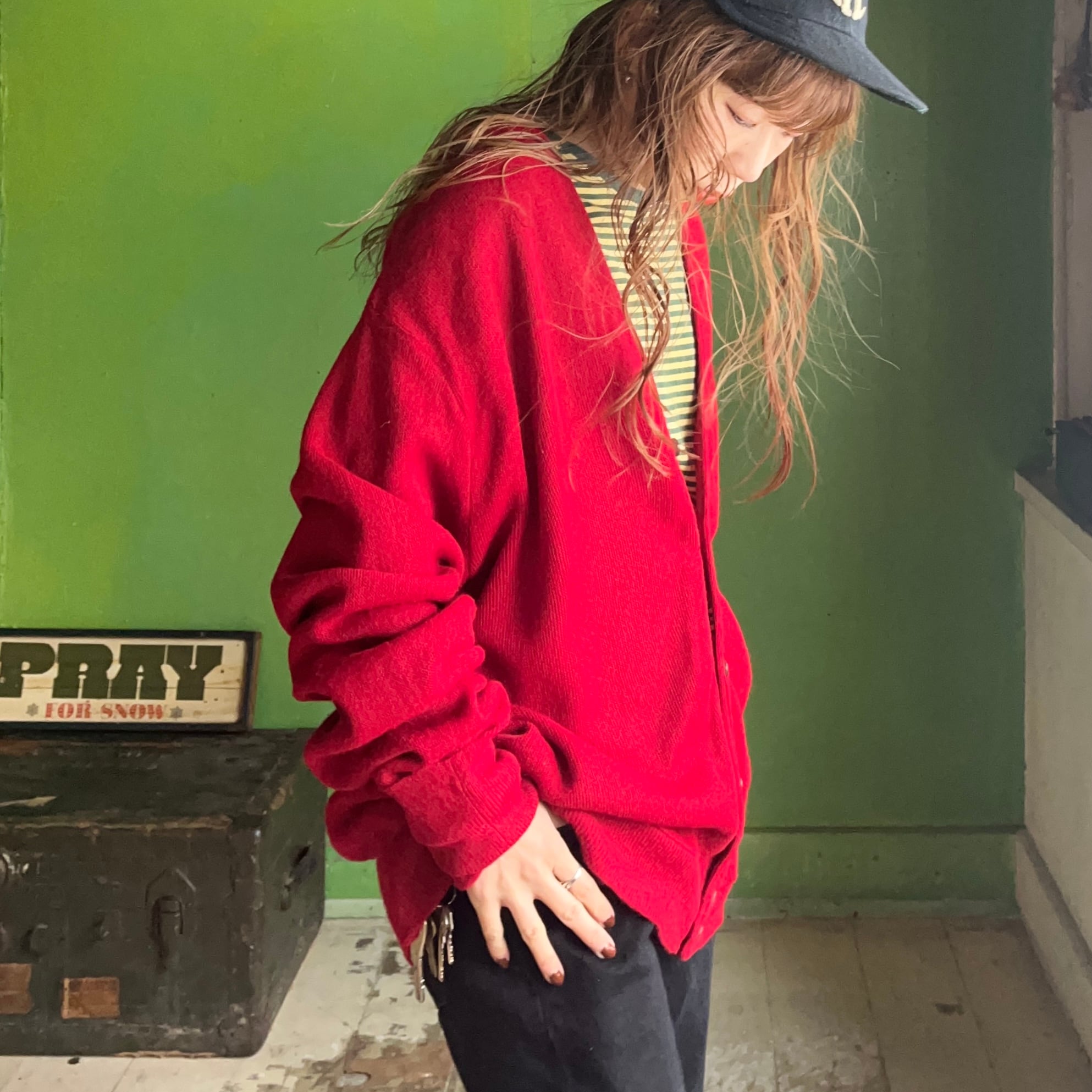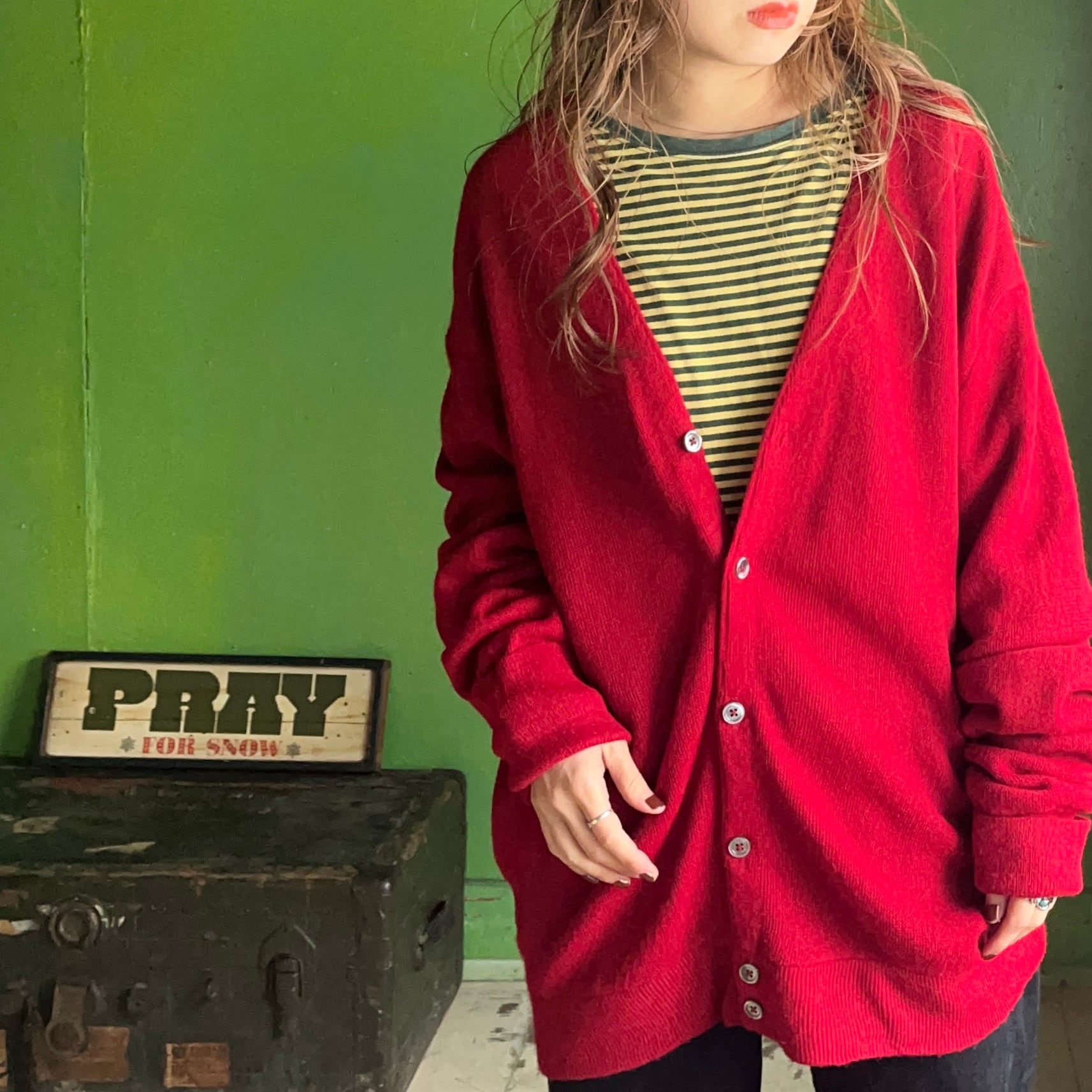 アクリルカーディガン。