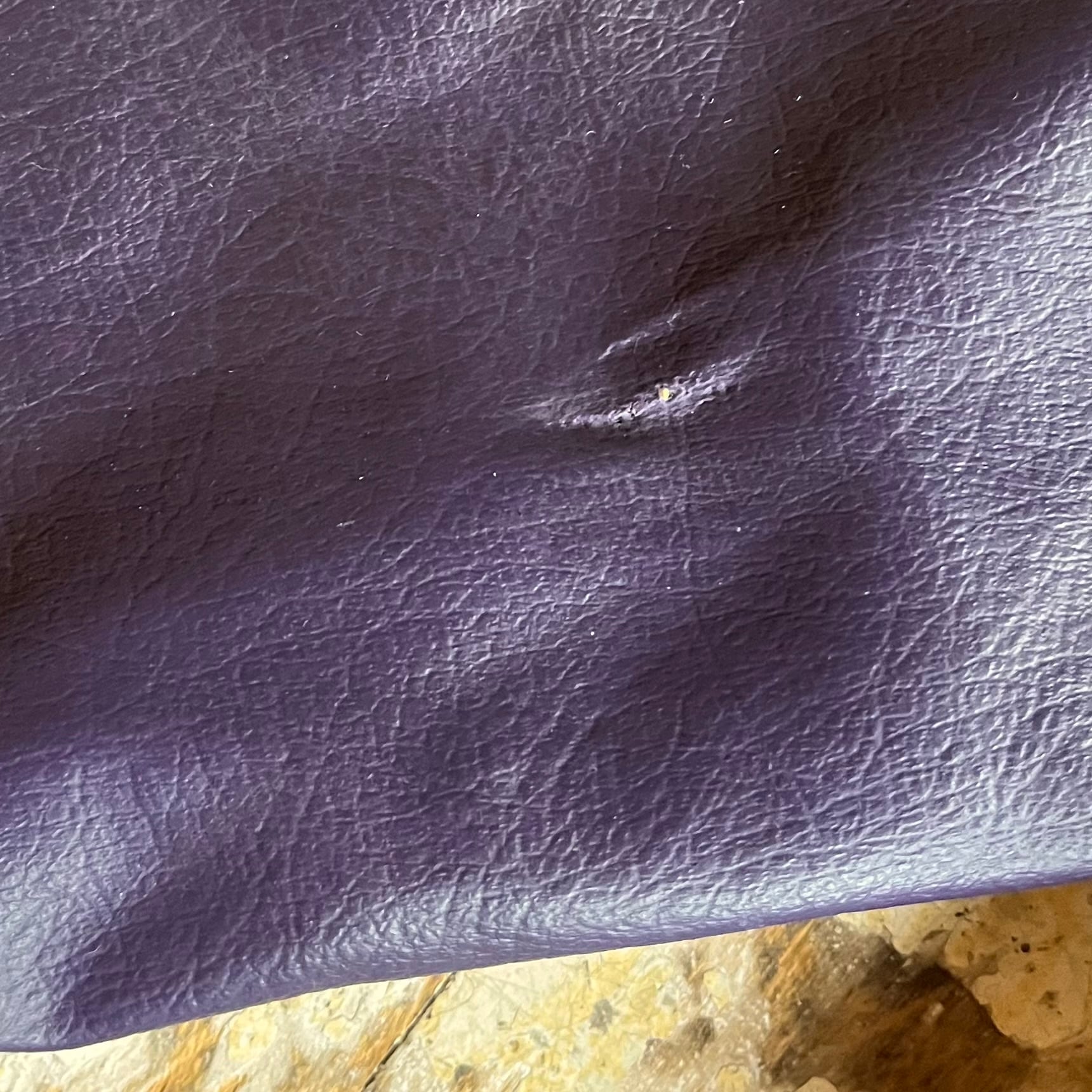 希少な白ボディと、パープルの皮袖の