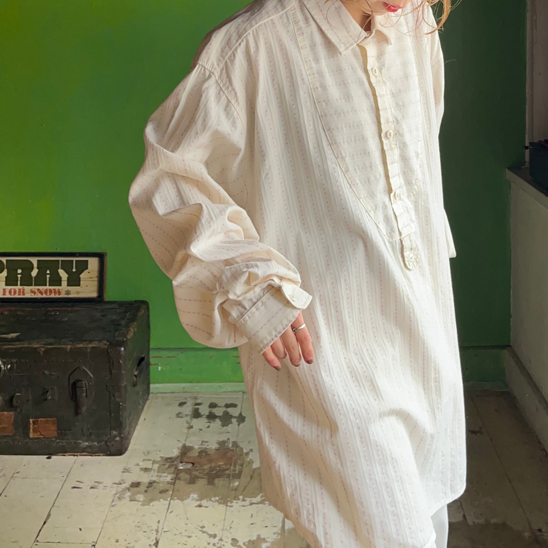 グランパシャツのようなロング丈に、