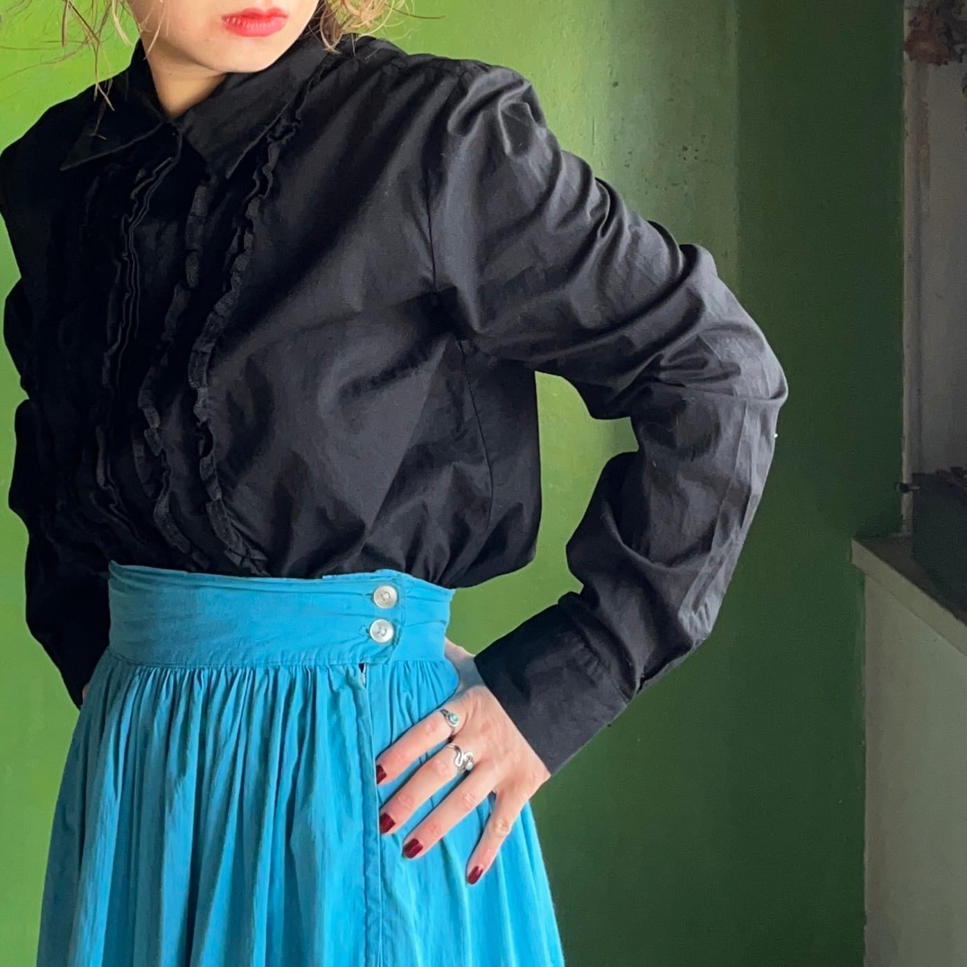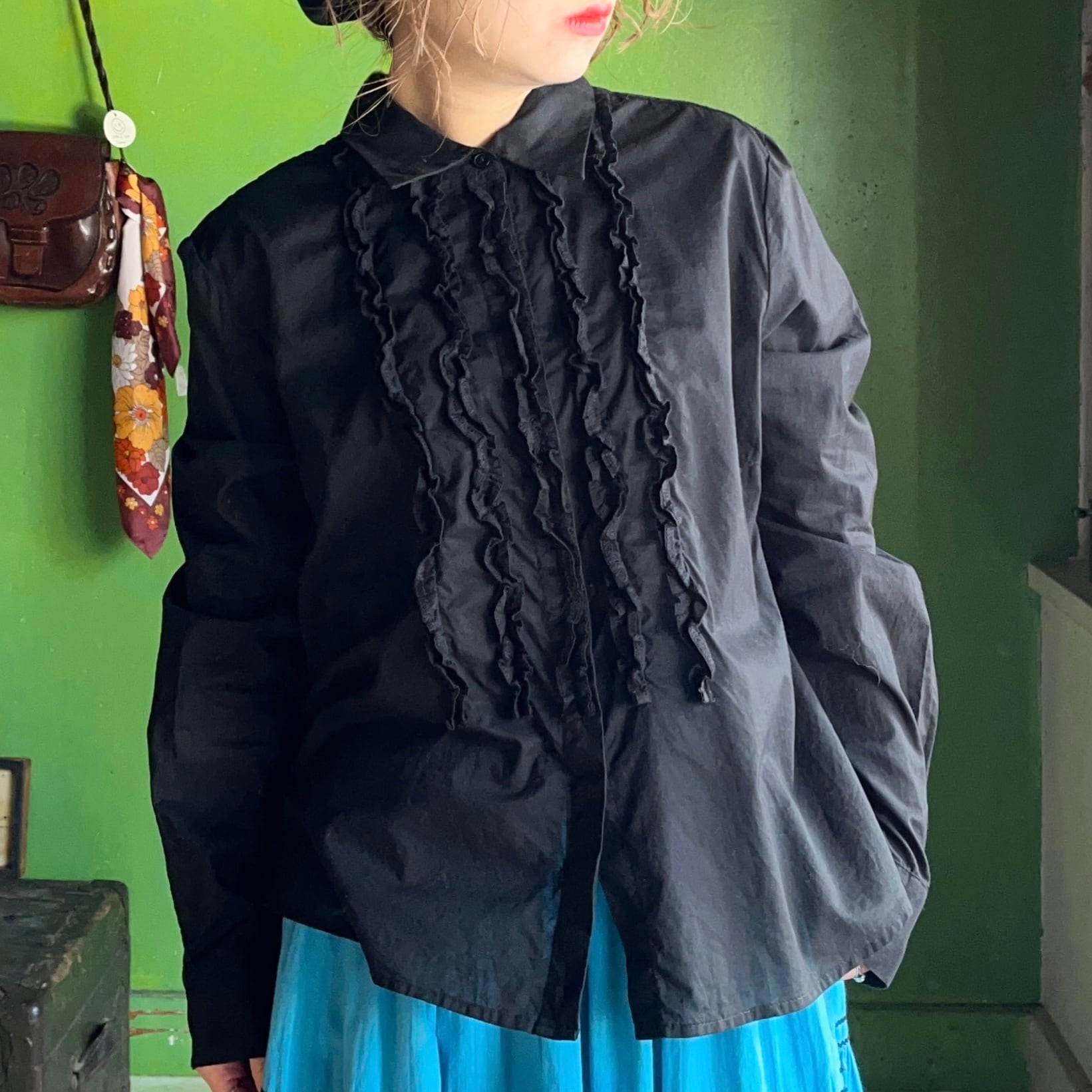 コットンフリルブラウス。