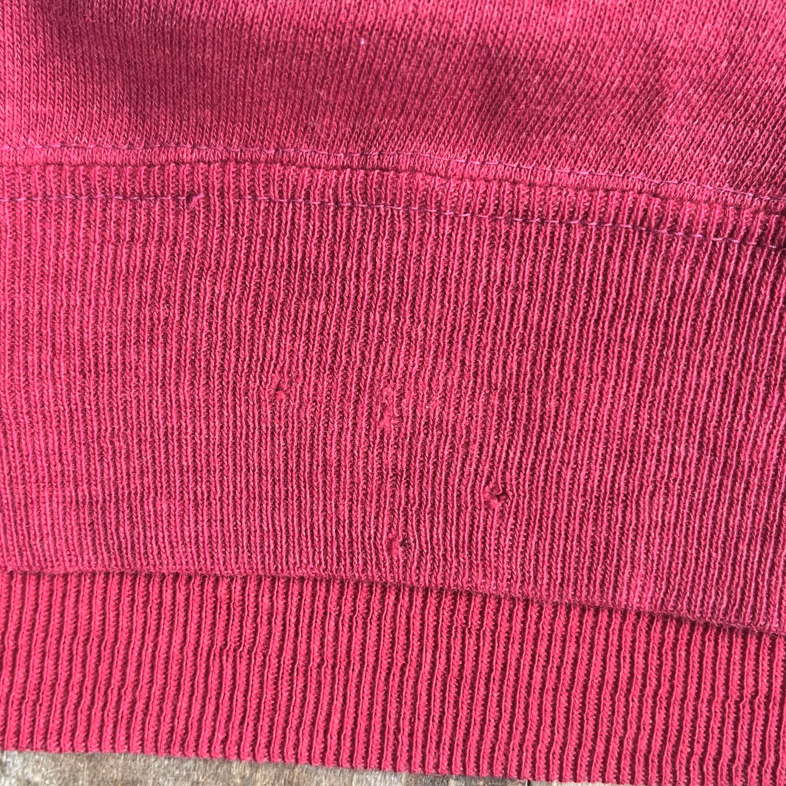 袖口に穴、袖リブに割れ。