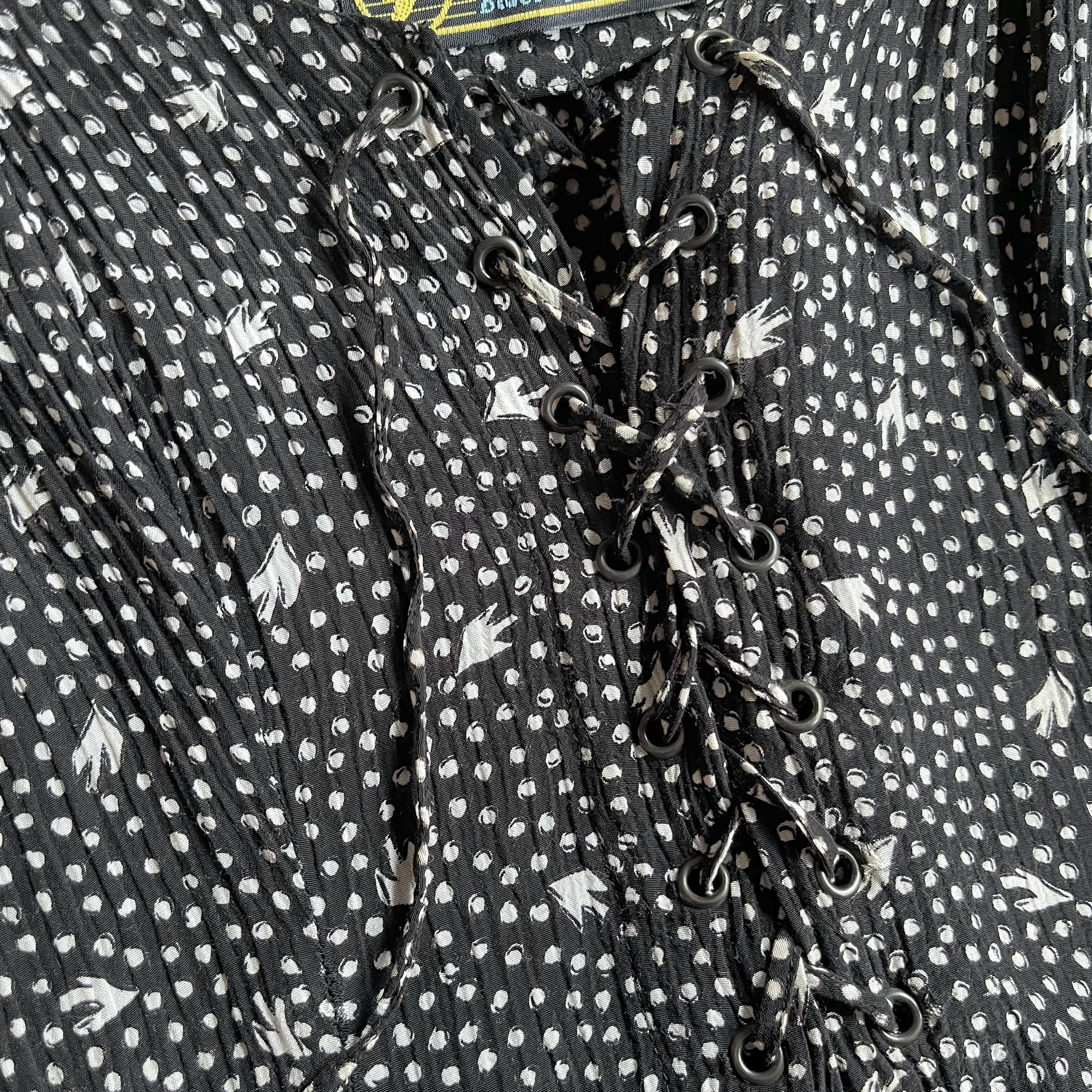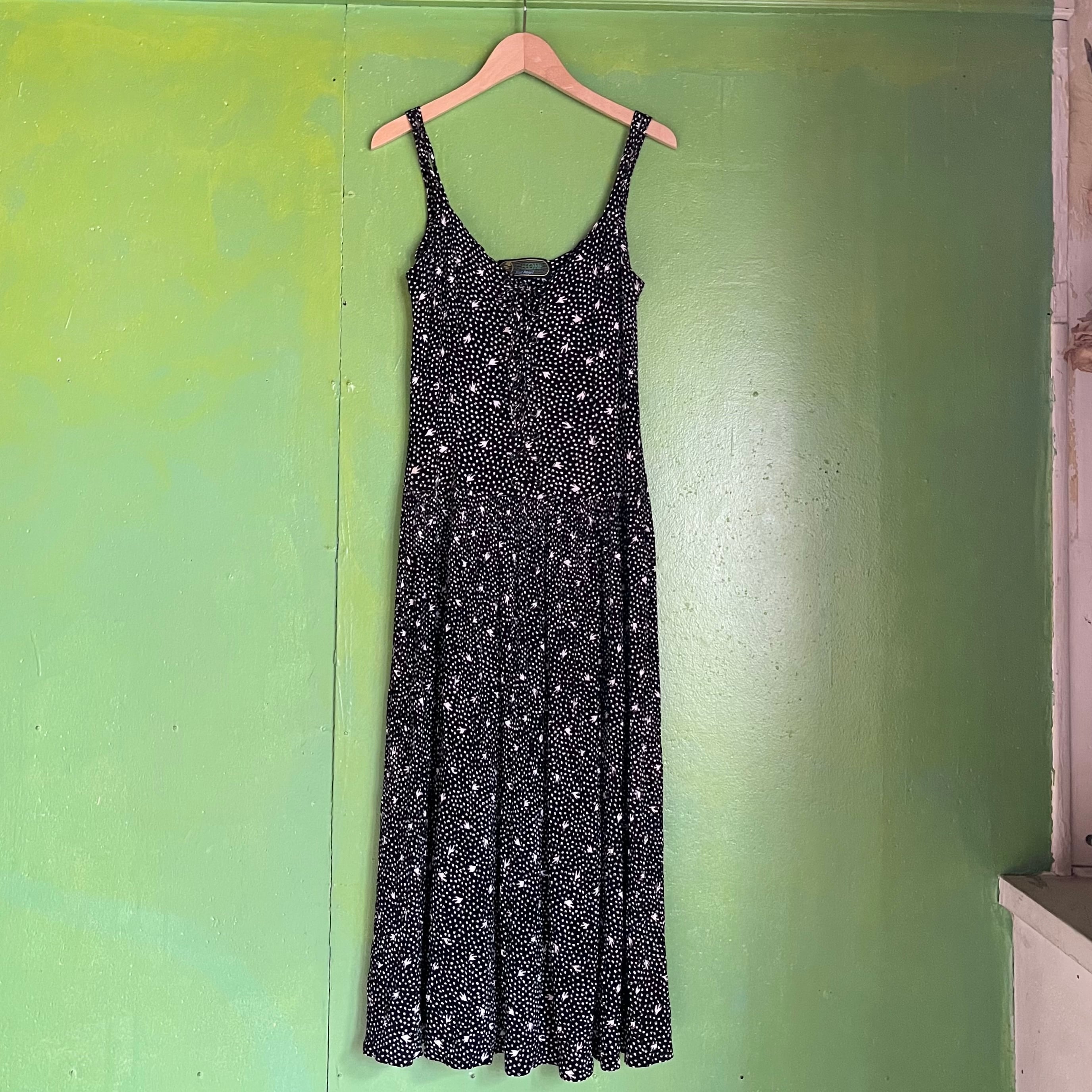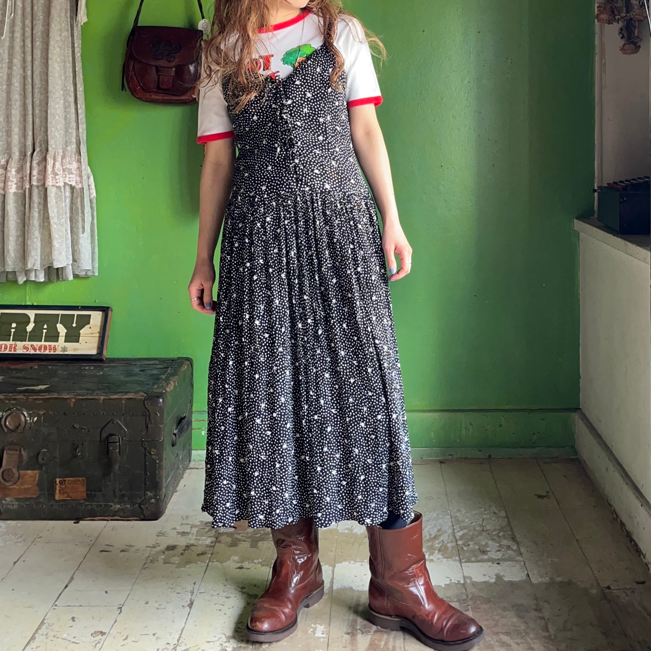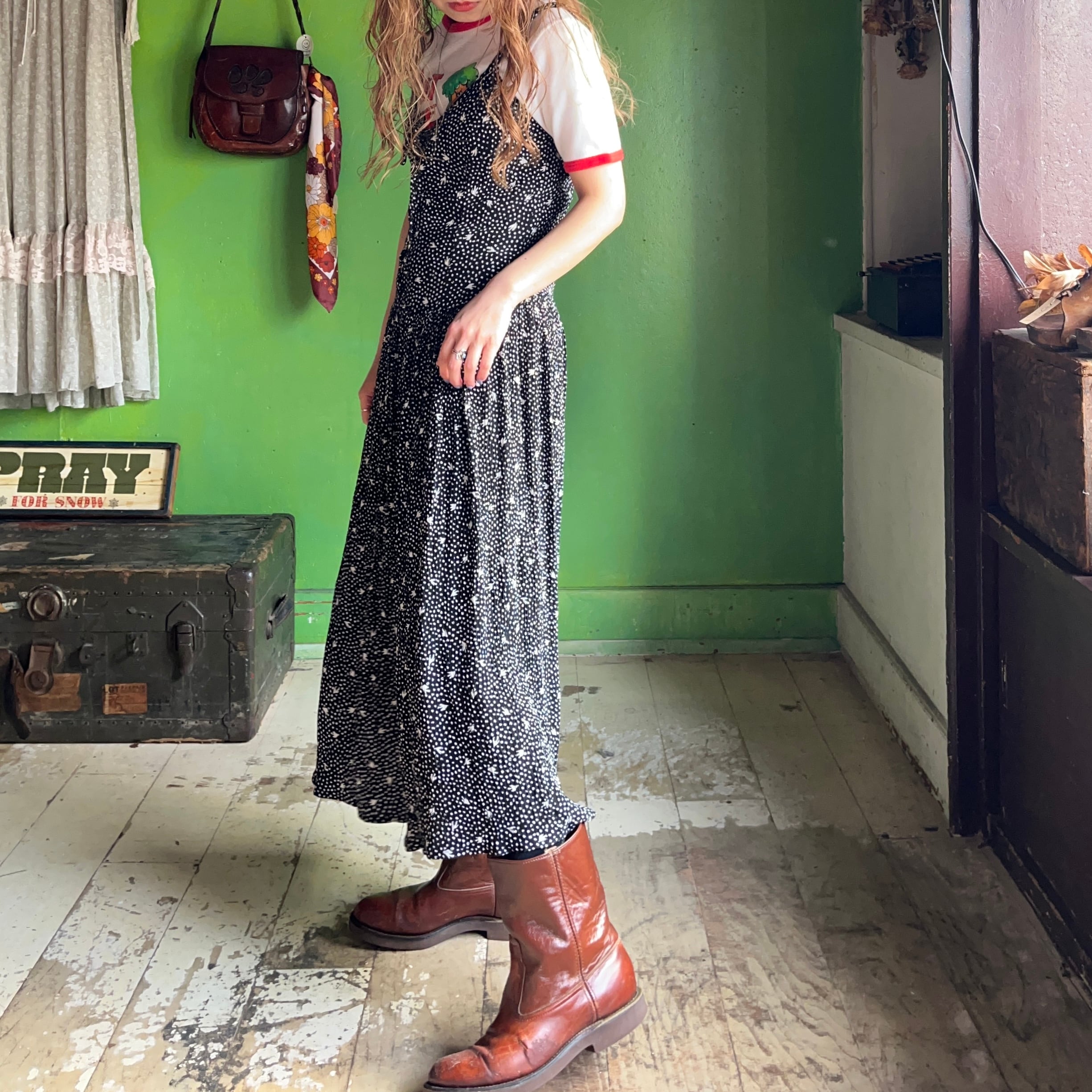 80s〜 レーヨン 総柄 キャミソールワンピース レースアップ