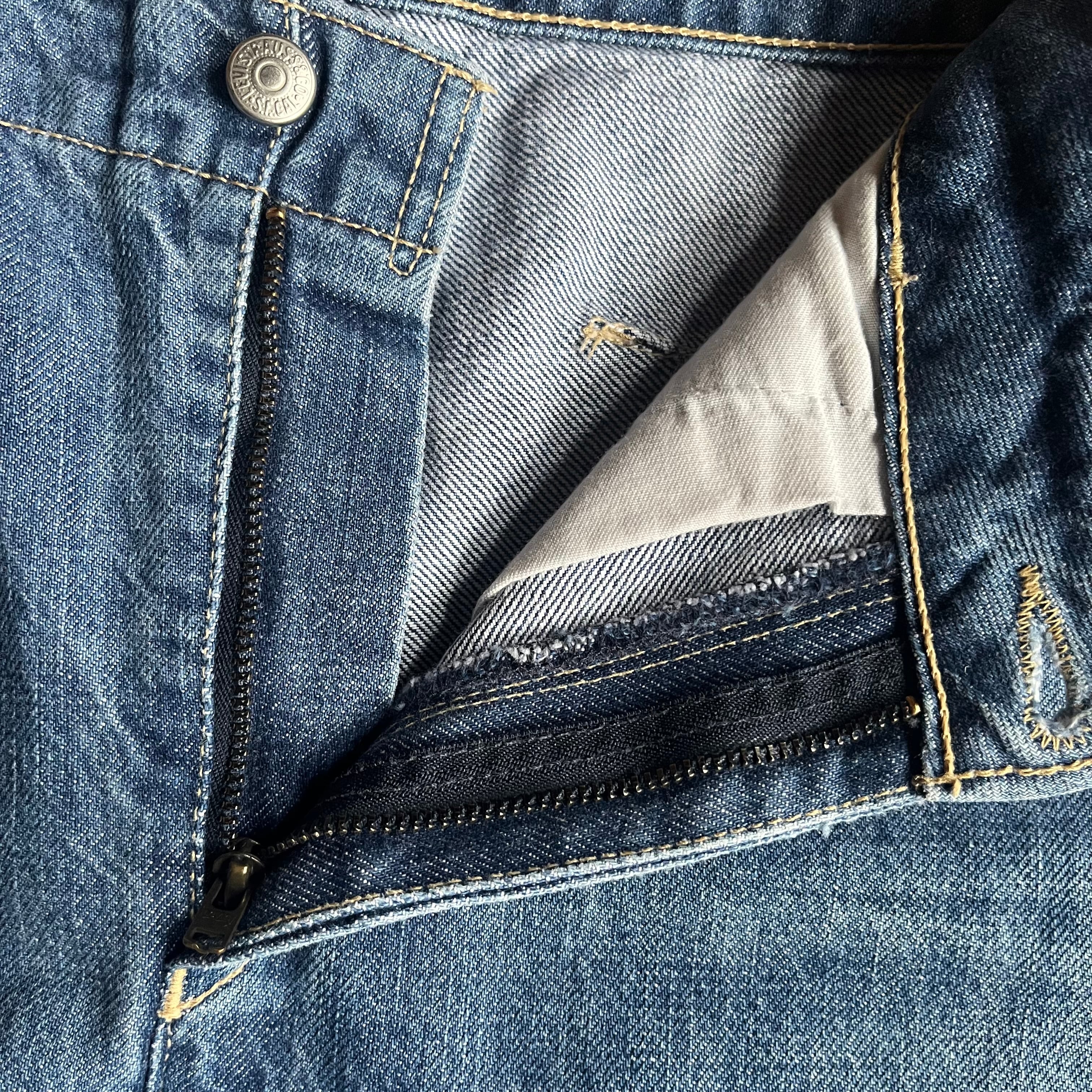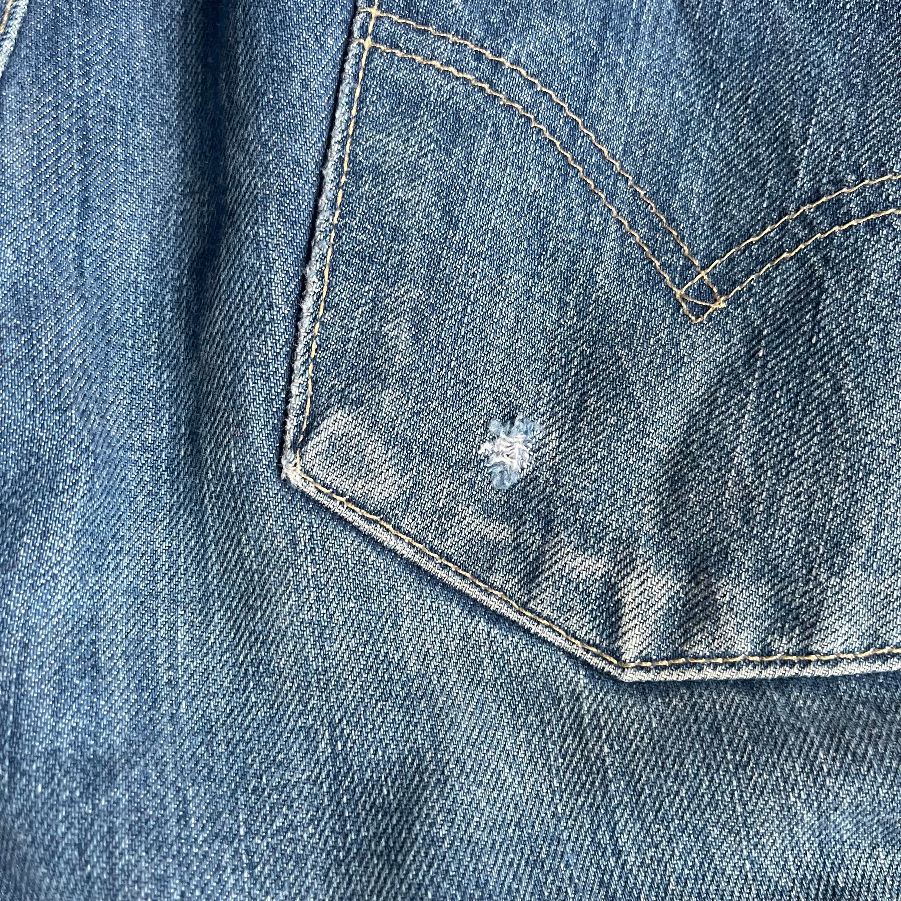 バックポケットにほつれ。股、裾に擦れ。
