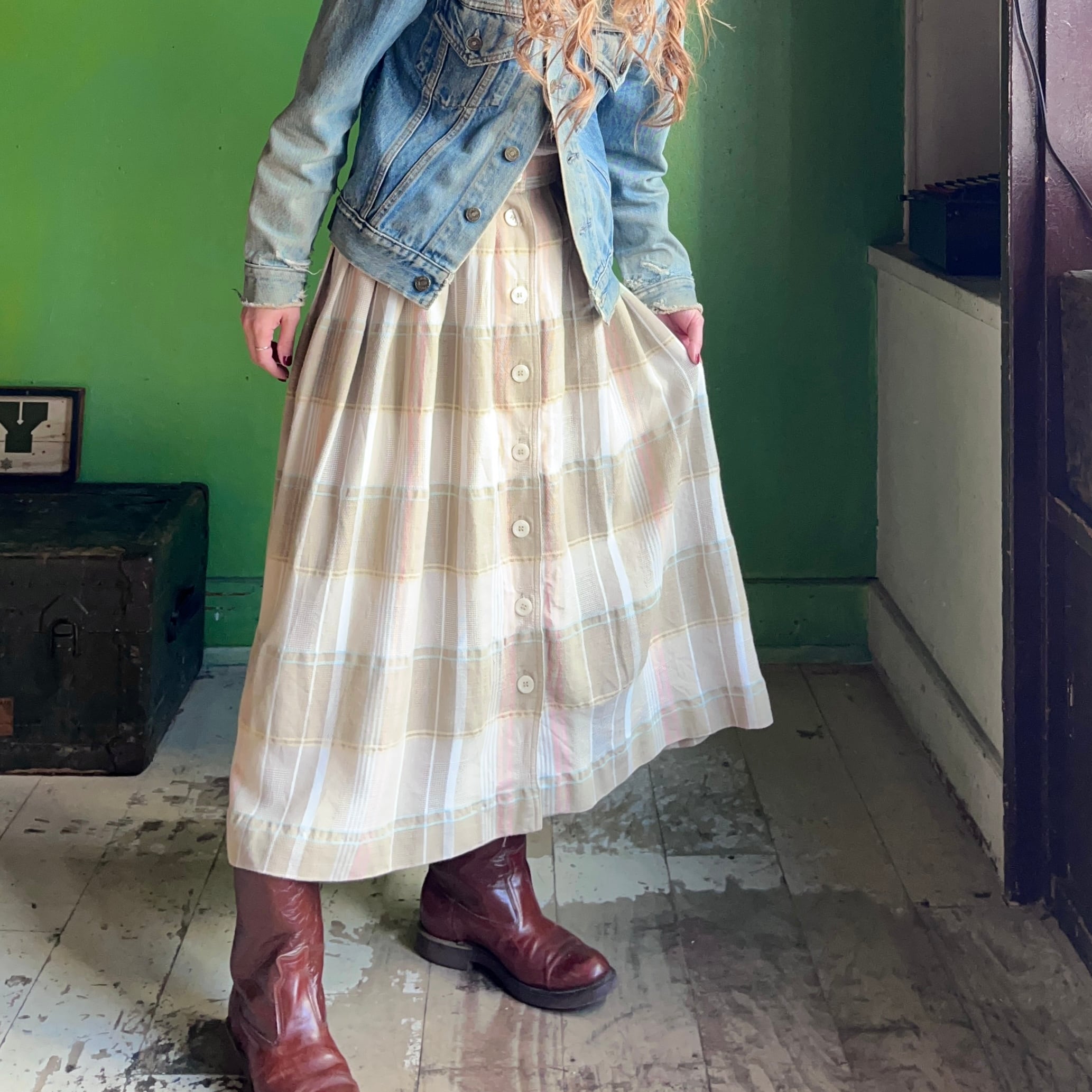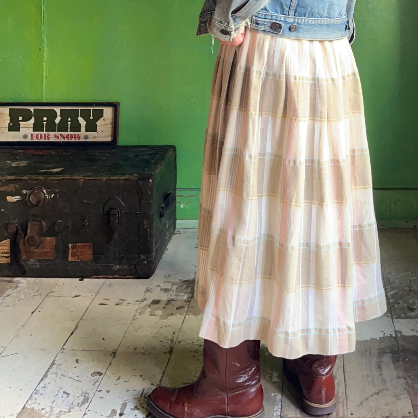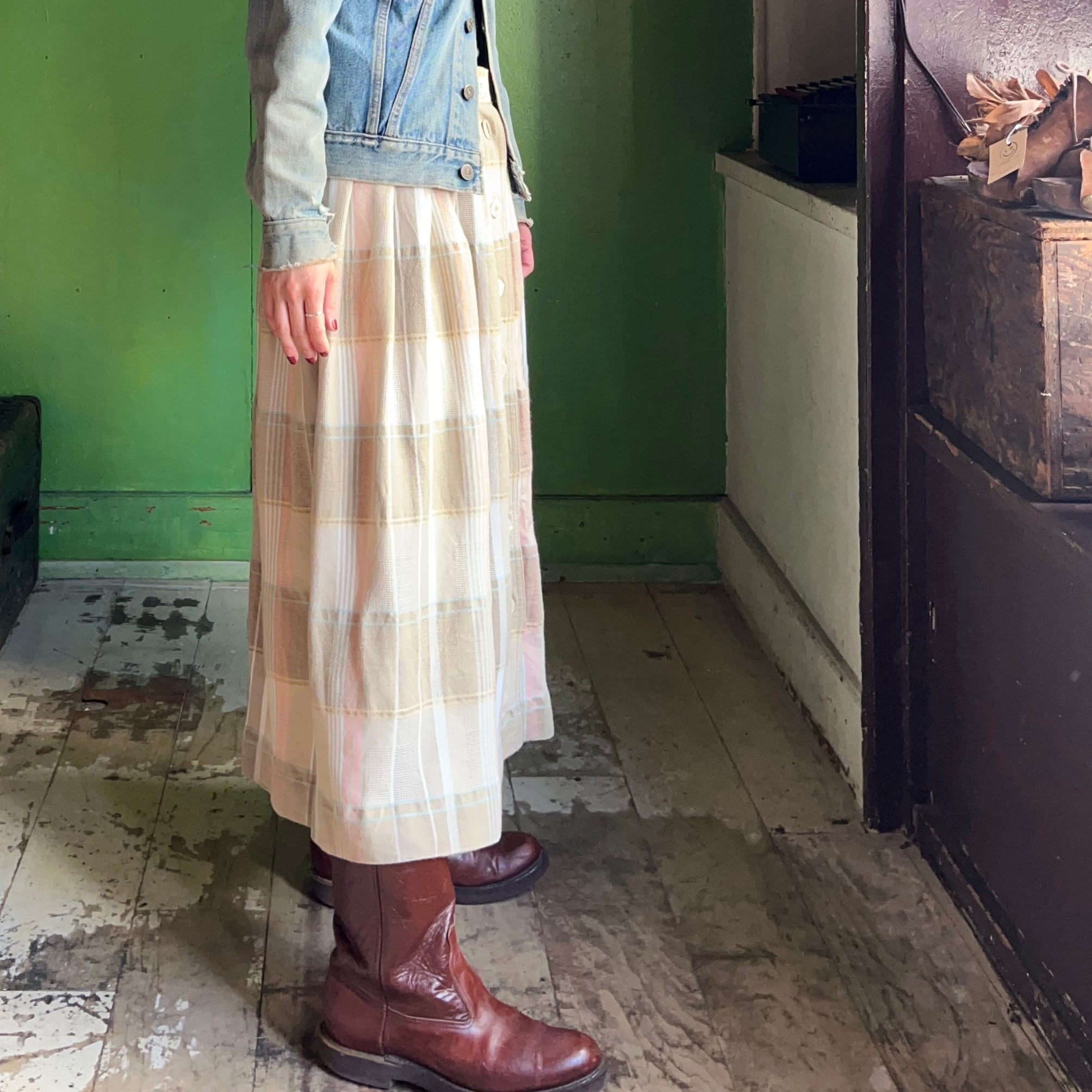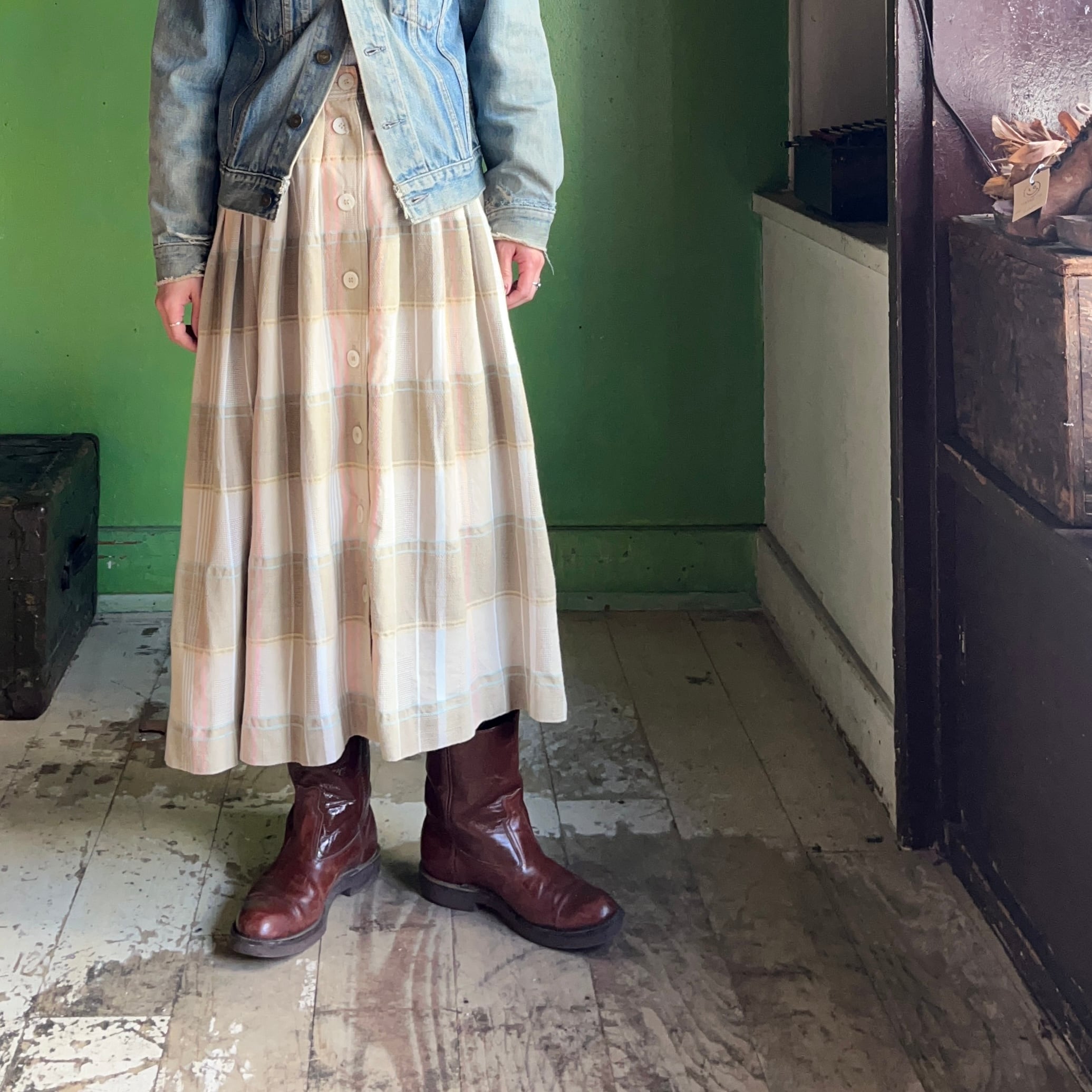 80s CHAUS チェック柄 フレアスカート