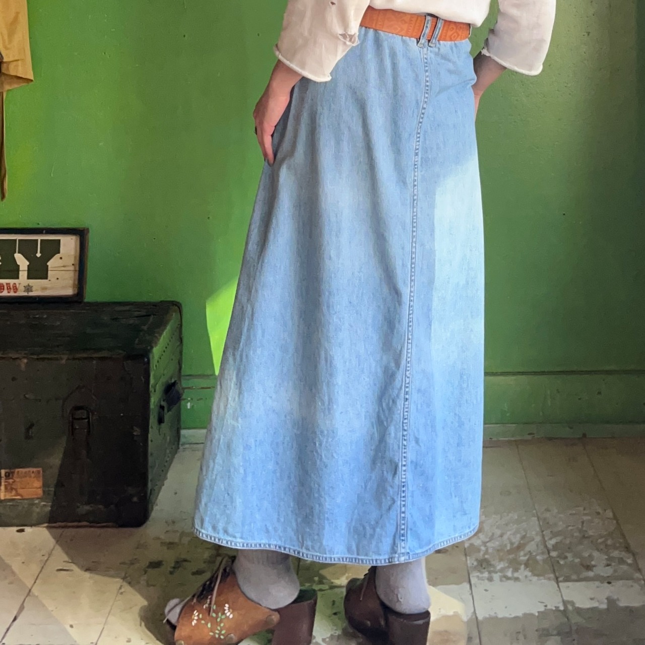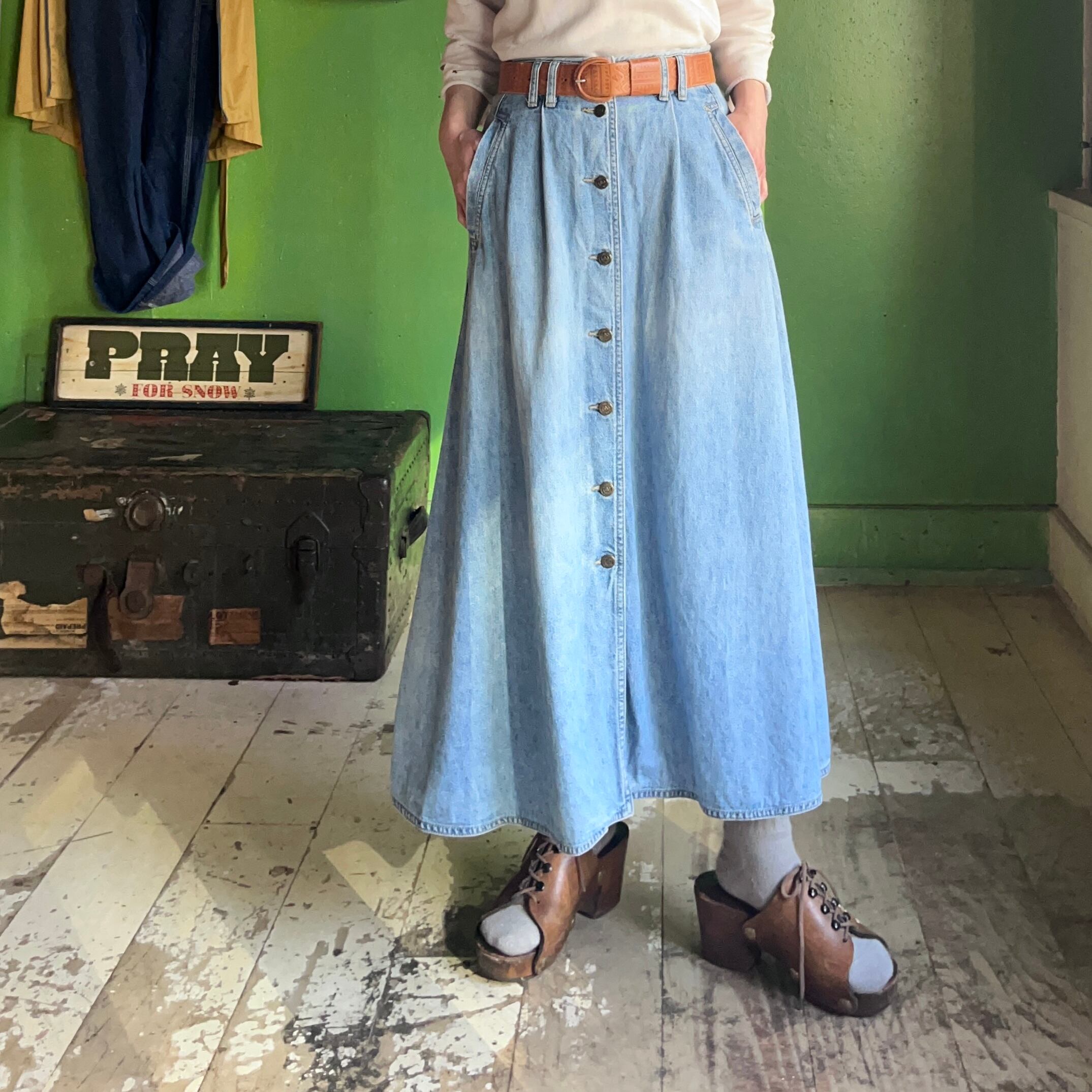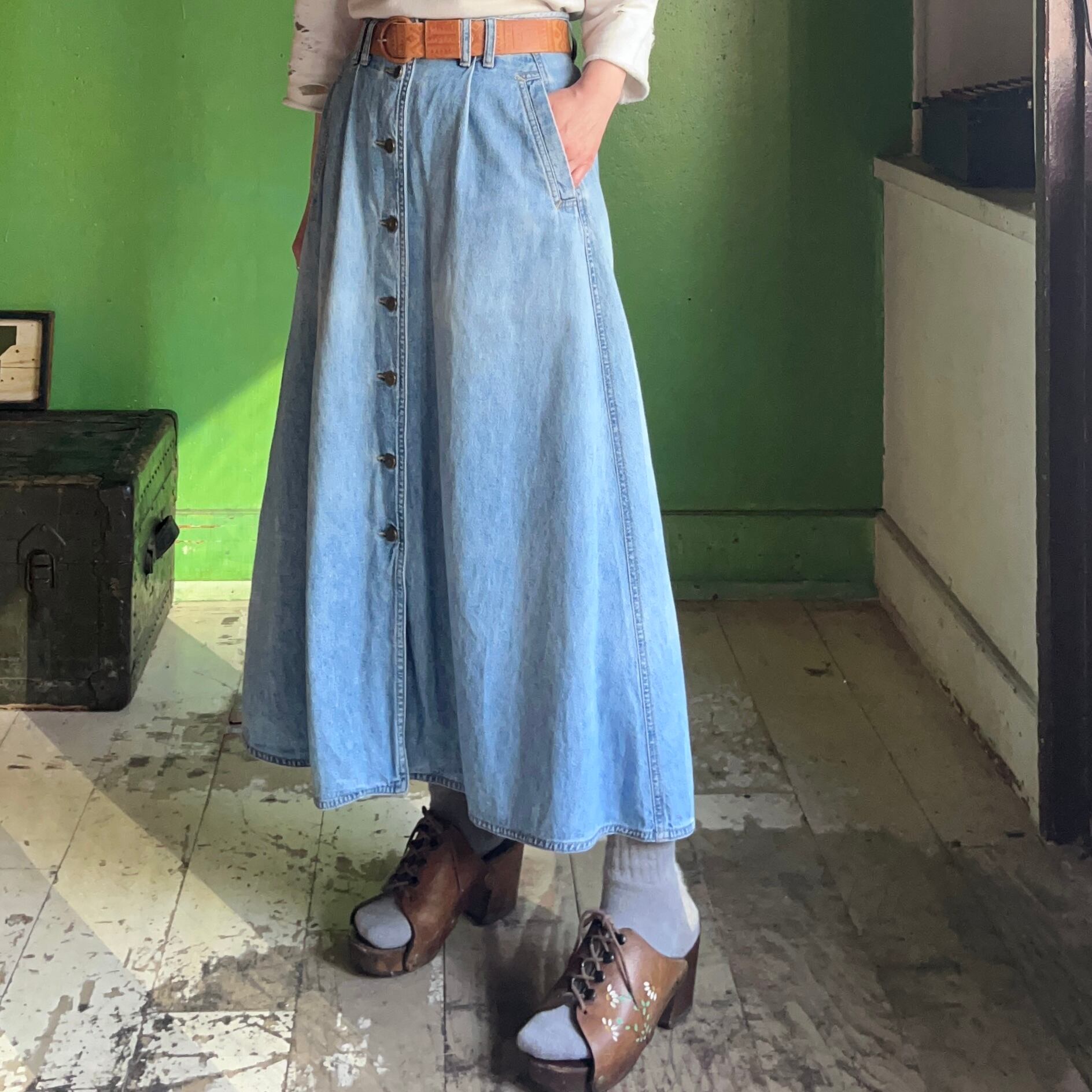 デニムフレアスカート。