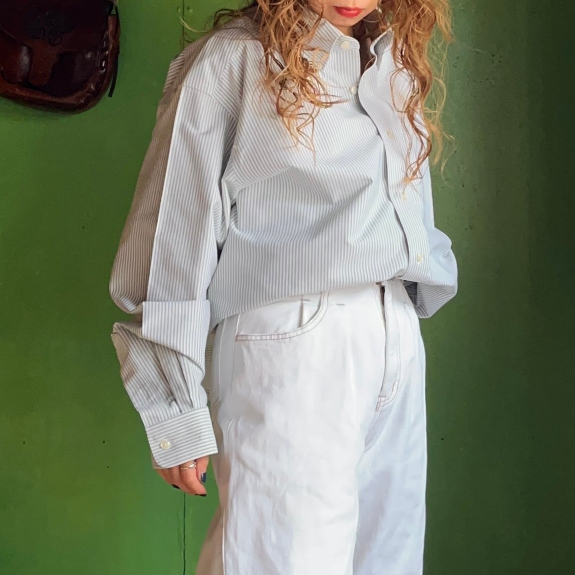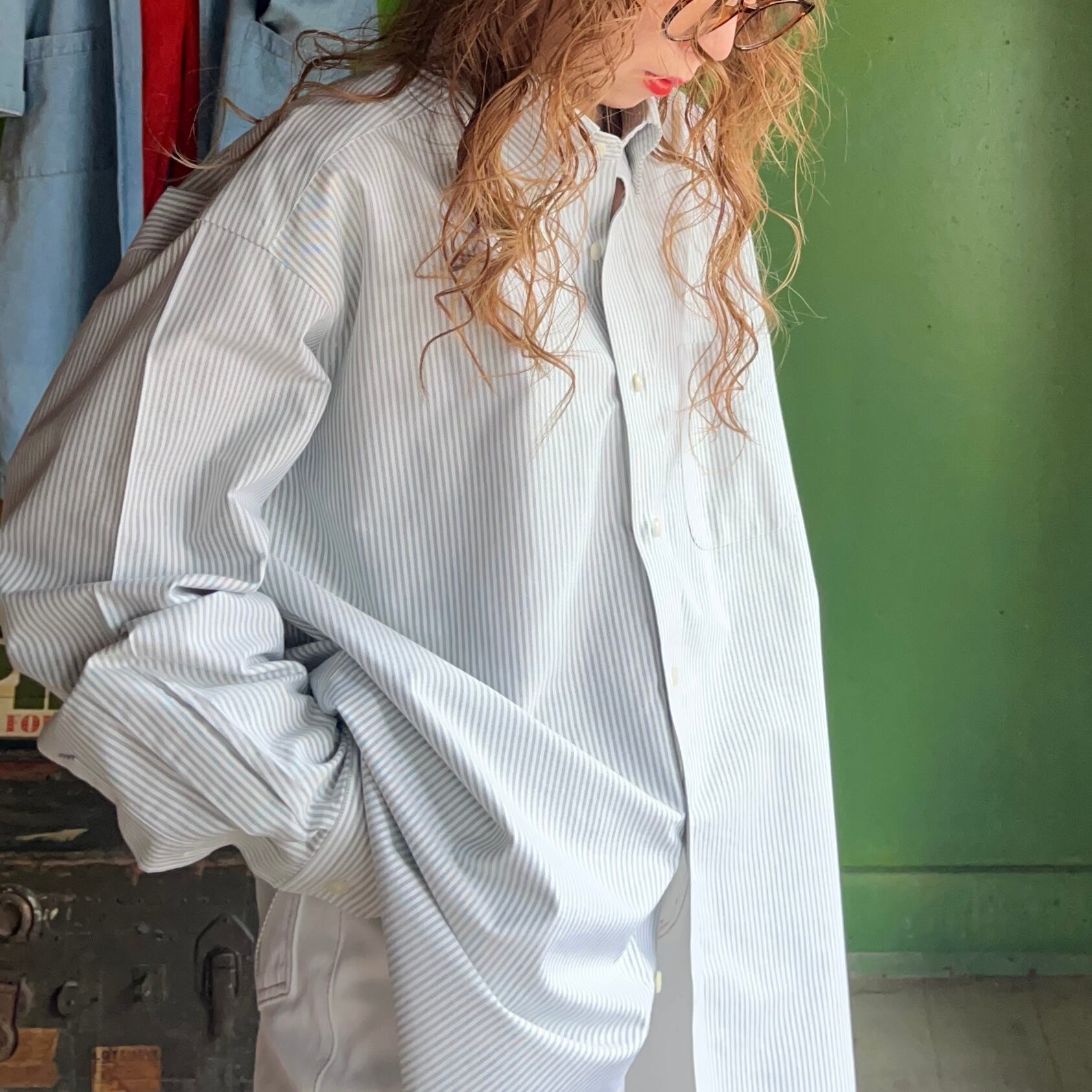 ストライプボタンダウンシャツ。