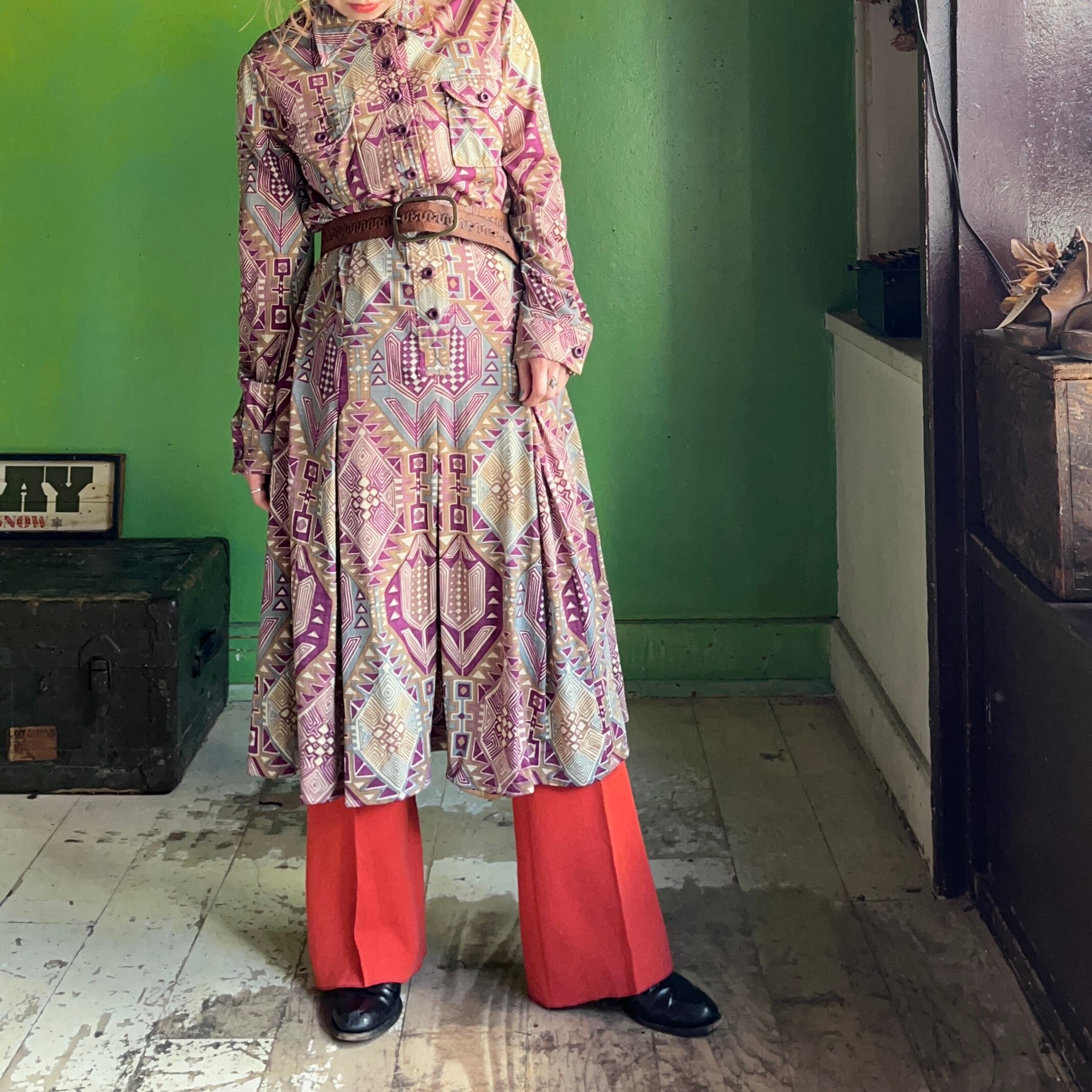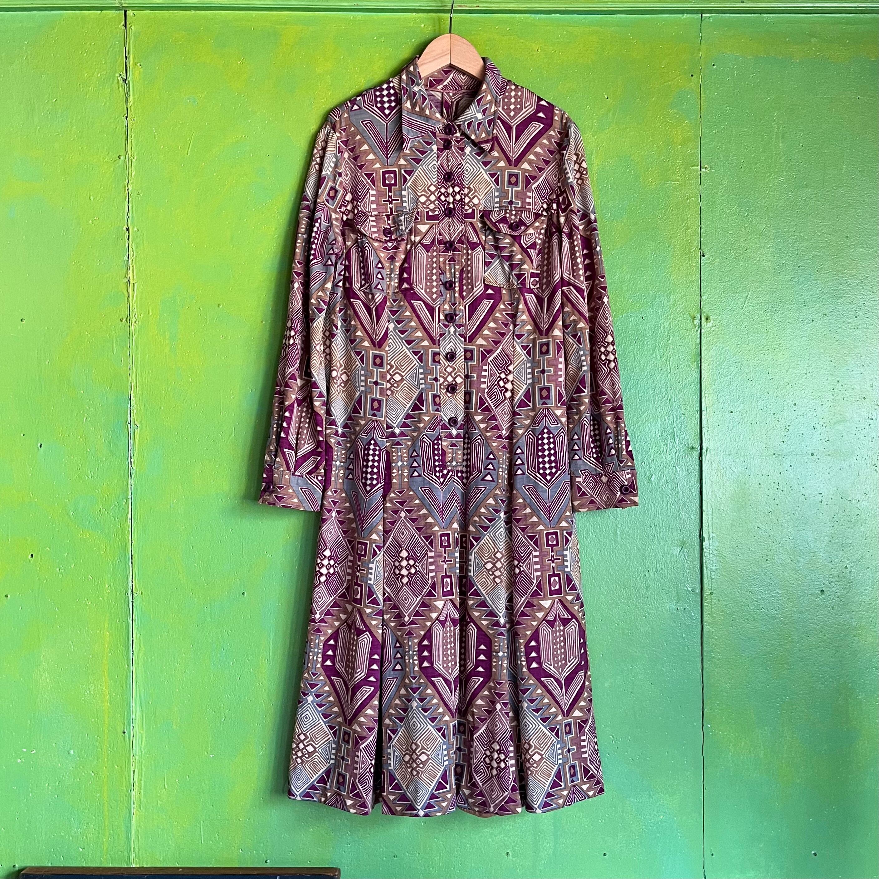 ポリエステル柄ワンピース。