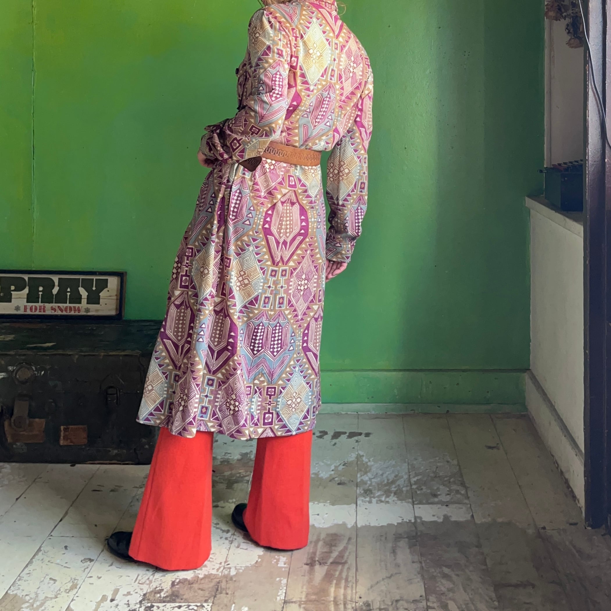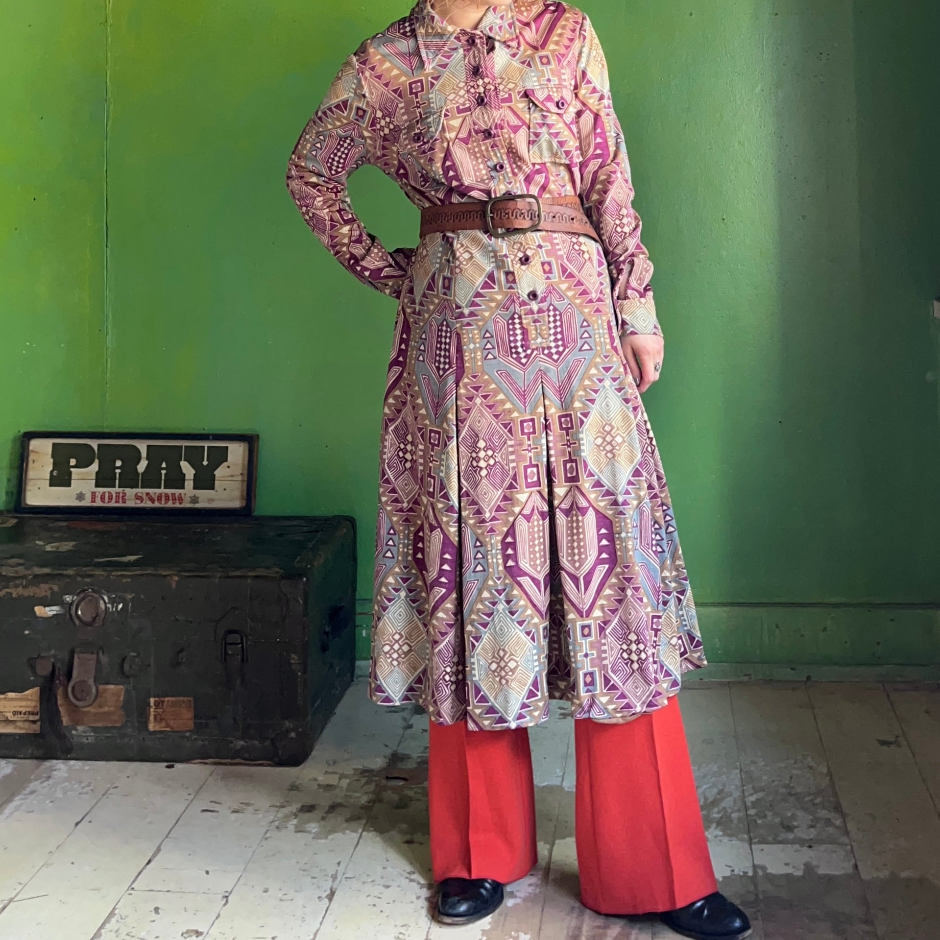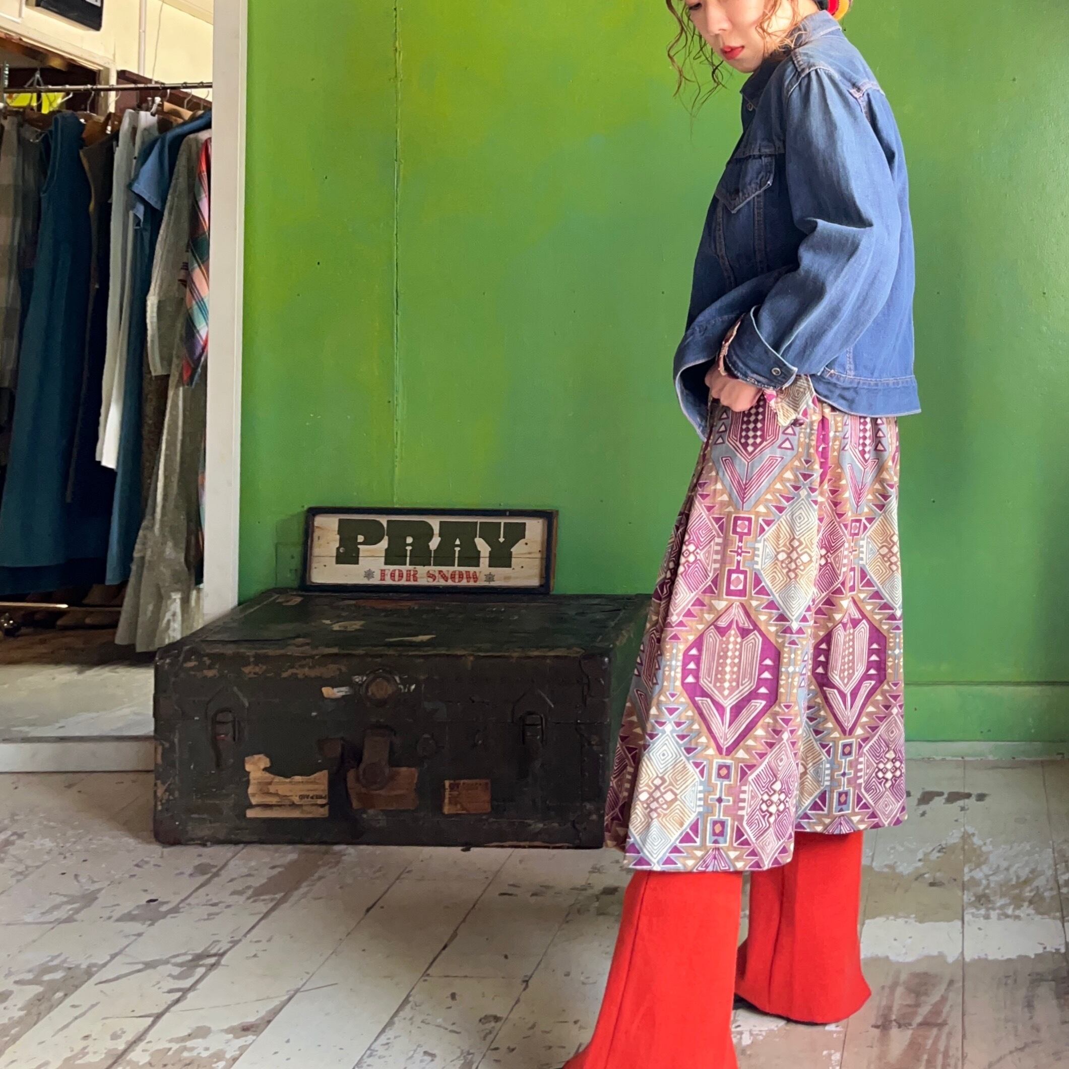 ニュアンスカラーのエスニック柄と、