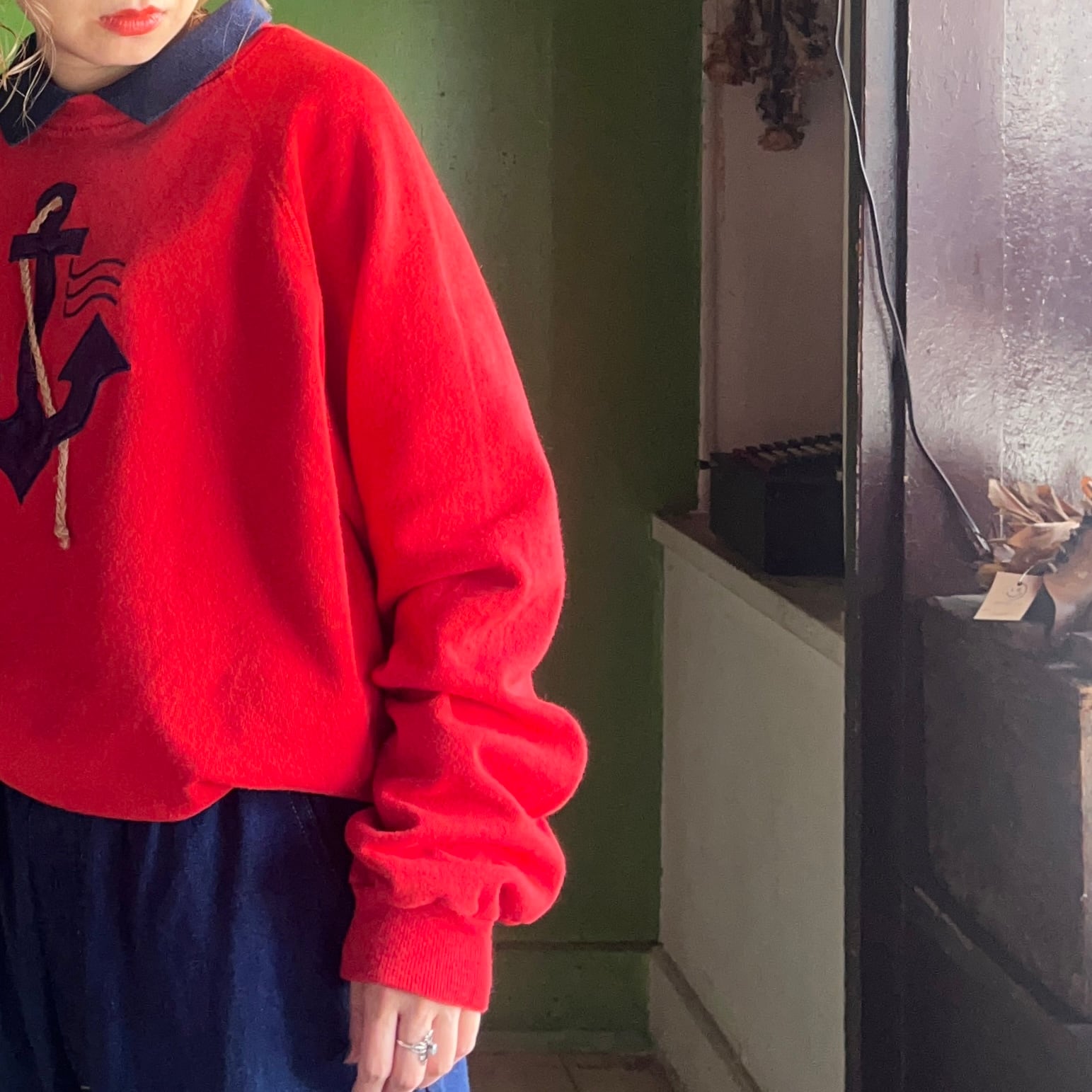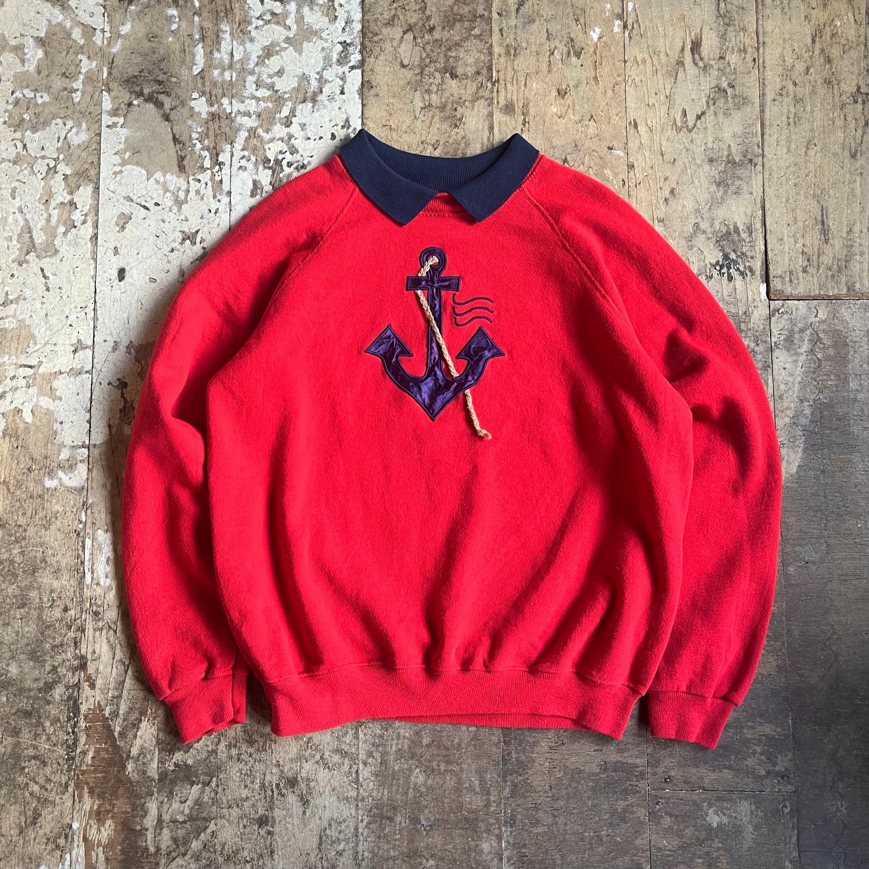 80s Hanes デザイン 襟付きスウェット アンカー